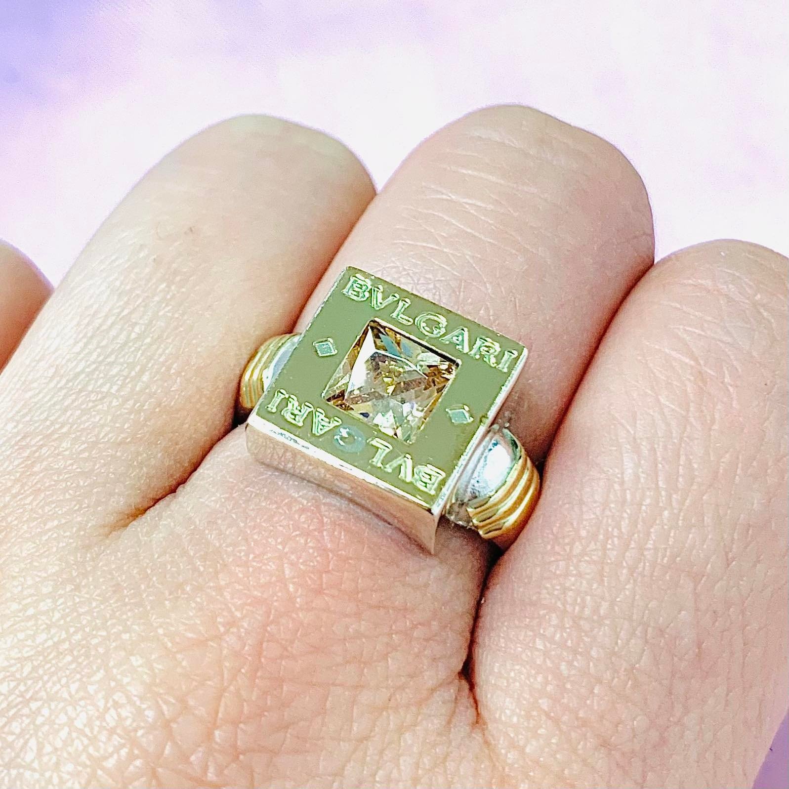 ANILLO BVLG cuadrado Grande ambar de Plata y oro