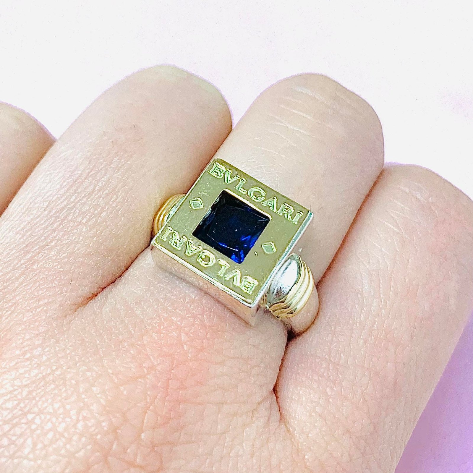 ANILLO BVLG cuadrado Grande zafiro de Plata y oro