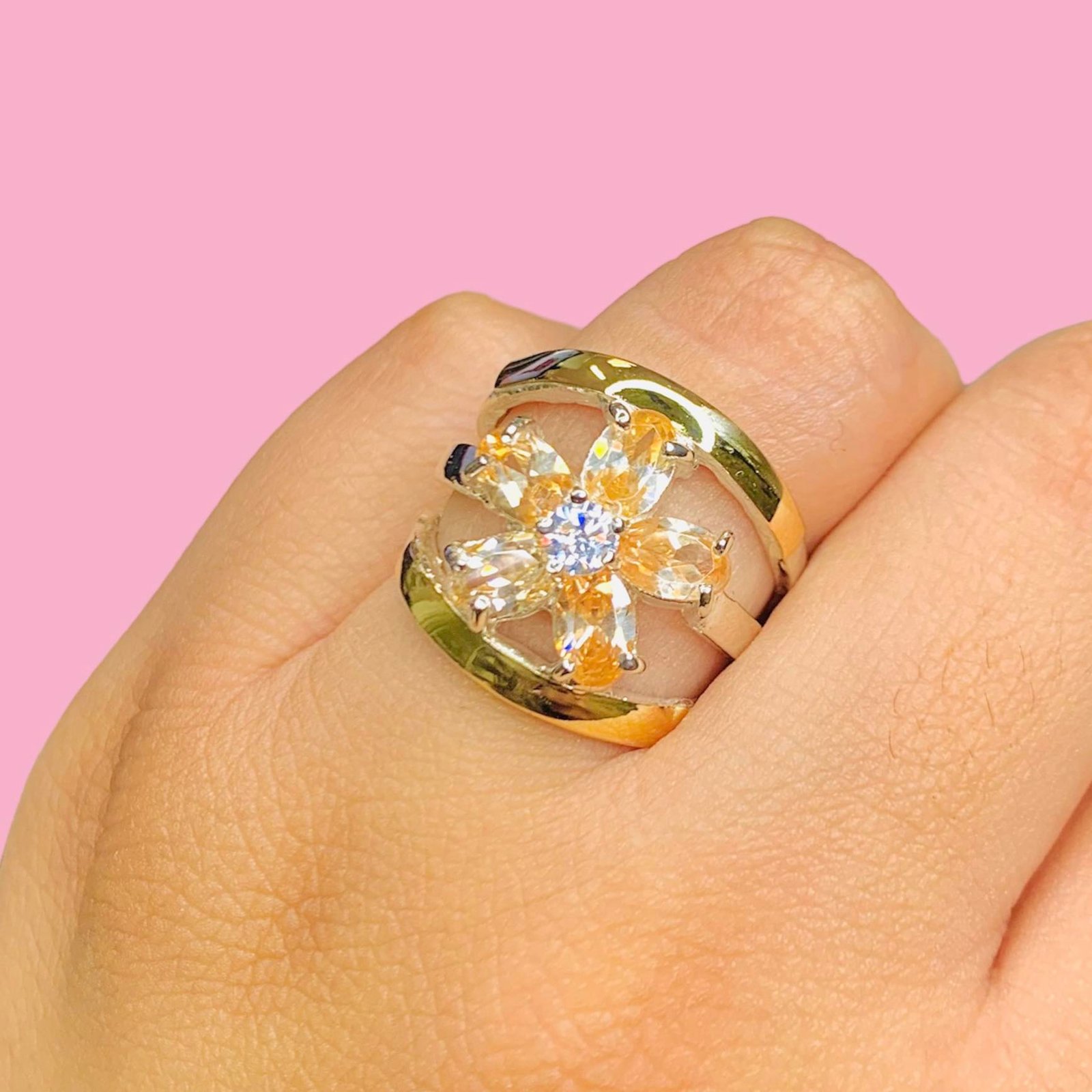 Artículo: AP 002-12Anillo flor con cubic Ambar
