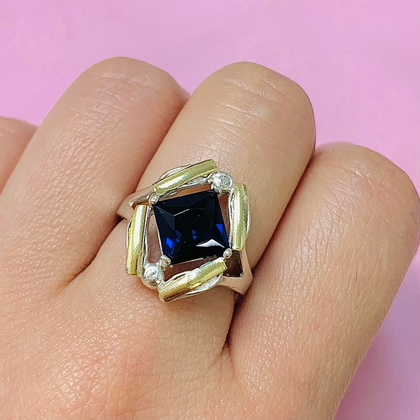 Anillo ROMBO con cubic Zafiro de Plata y Oro