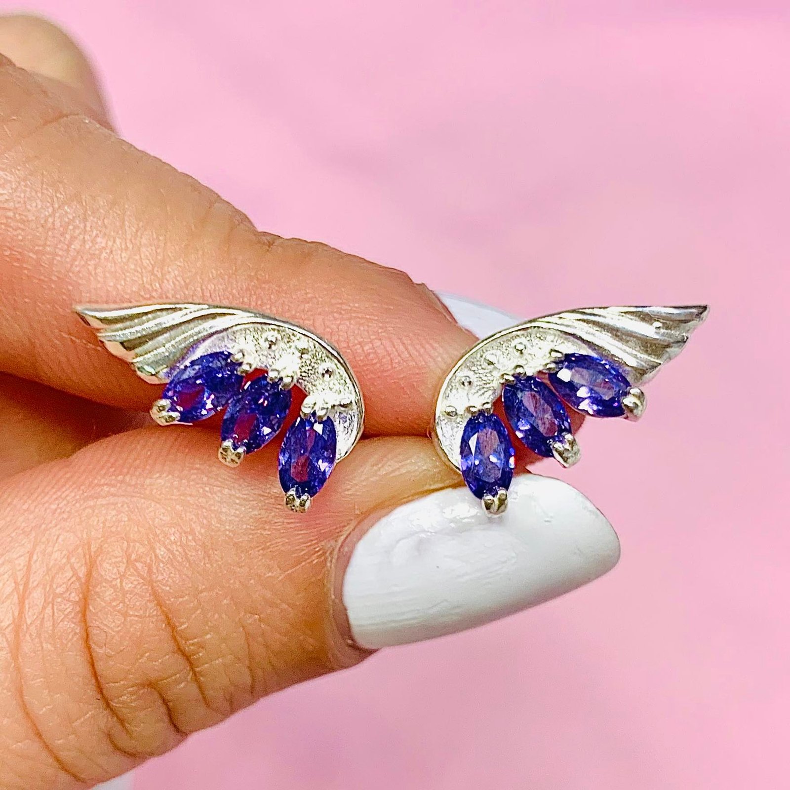 Aros ALAS DE HADA con piedras Amatista de Plata 925