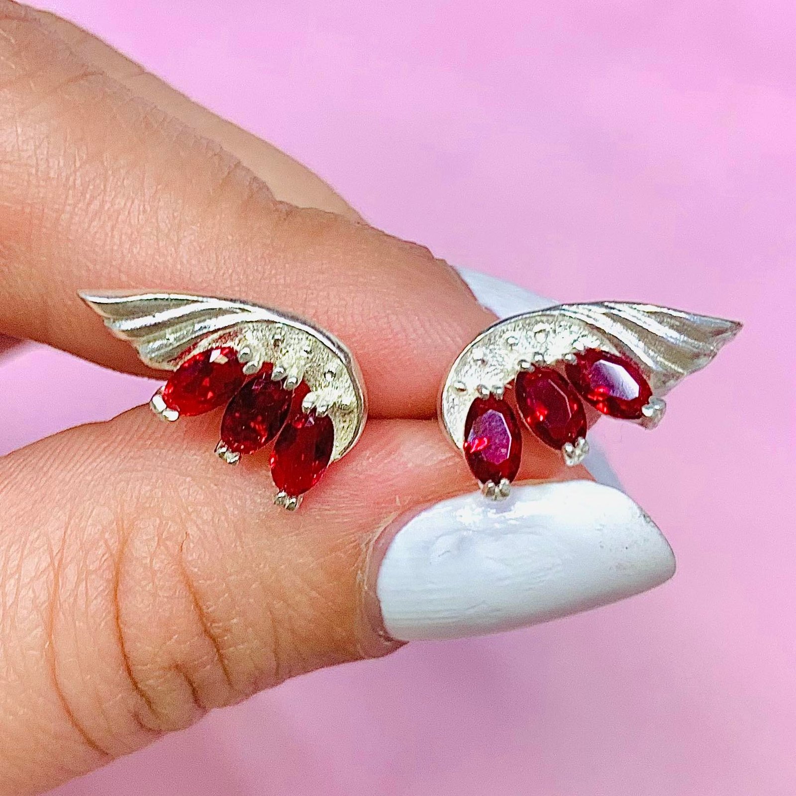 Aros ALAS DE HADA con piedras Rubi de Plata 925