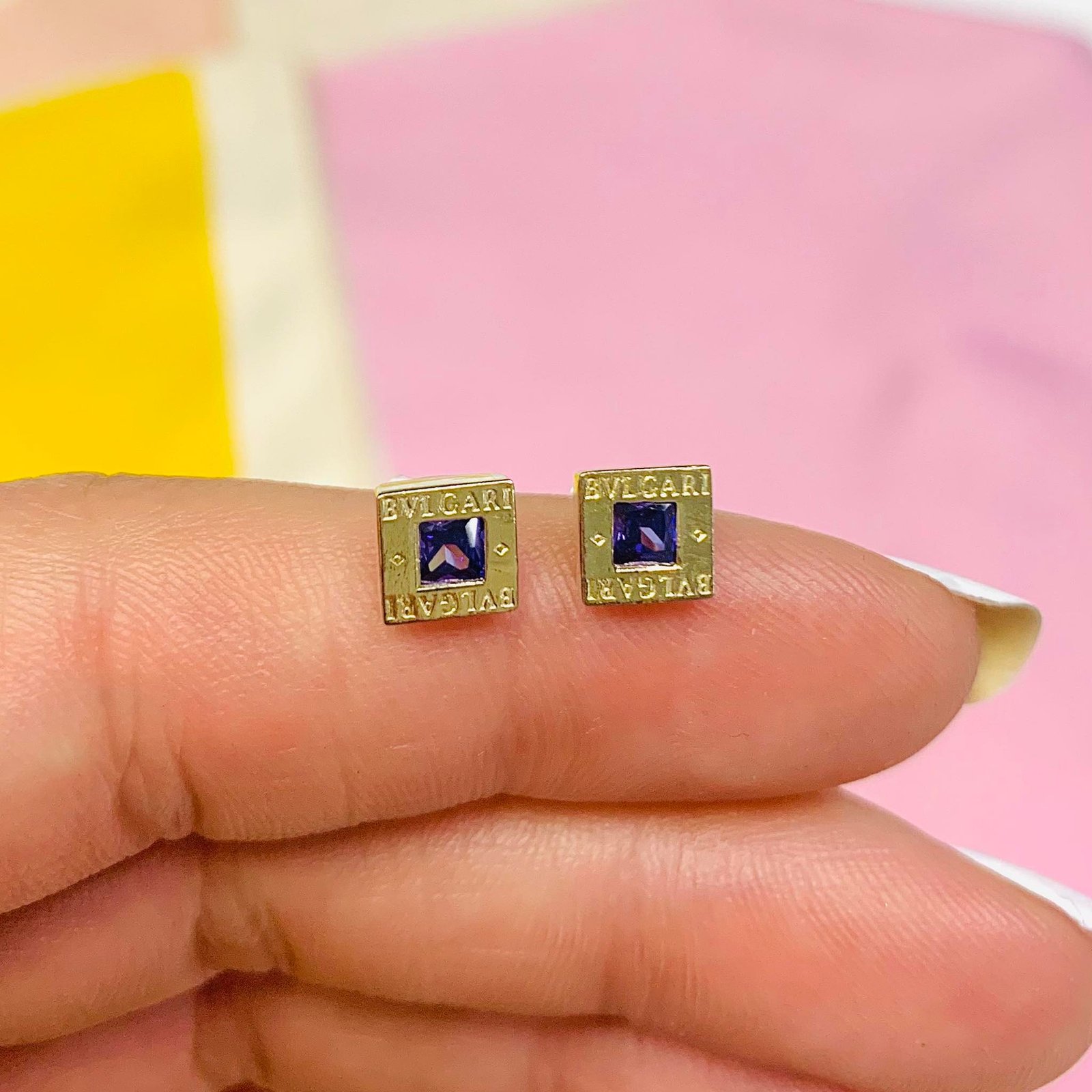 Aros BVL macizo Cuadrado mini amatista de Plata y Oro