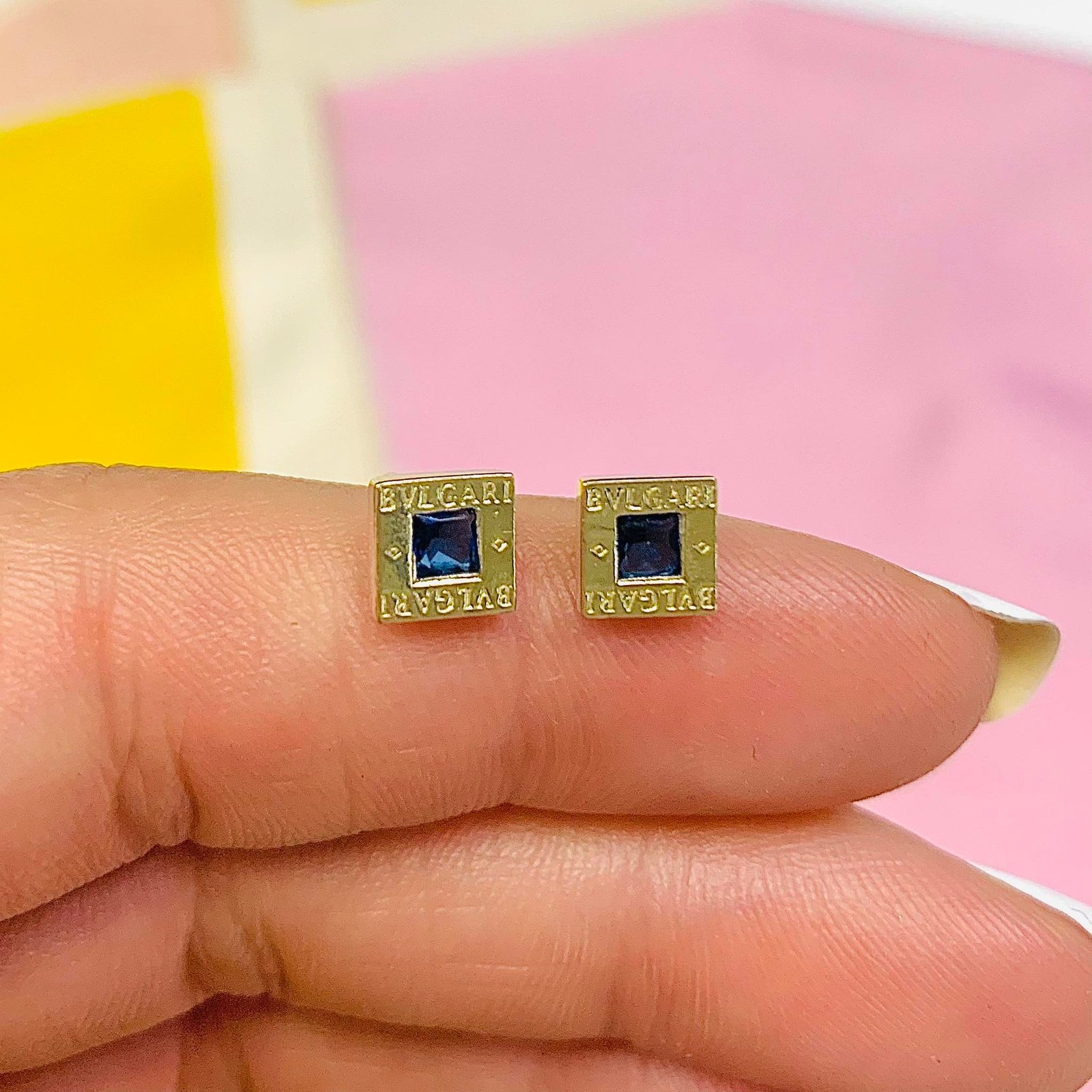 Aros BVL macizo Cuadrado mini zafiro de Plata y Oro