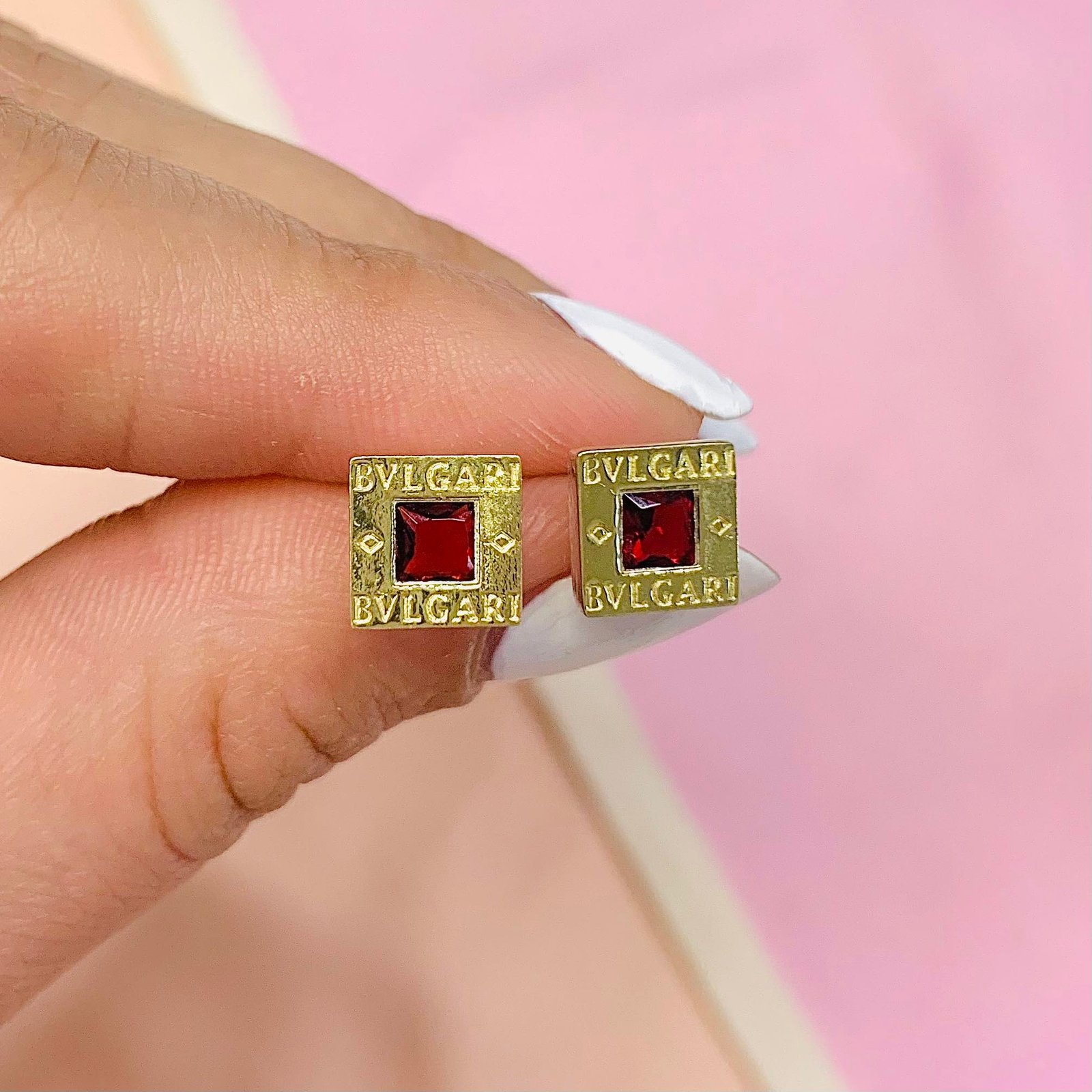 Aros BVL macizo Cuadrado mediano rubi de Plata y Oro