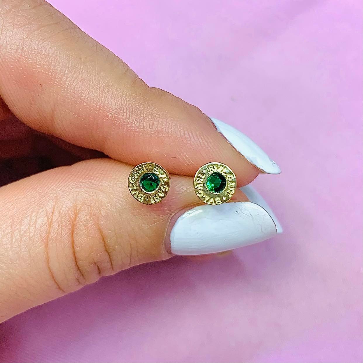 Aros BVL macizo redondo mini esmeralda de Plata y Oro