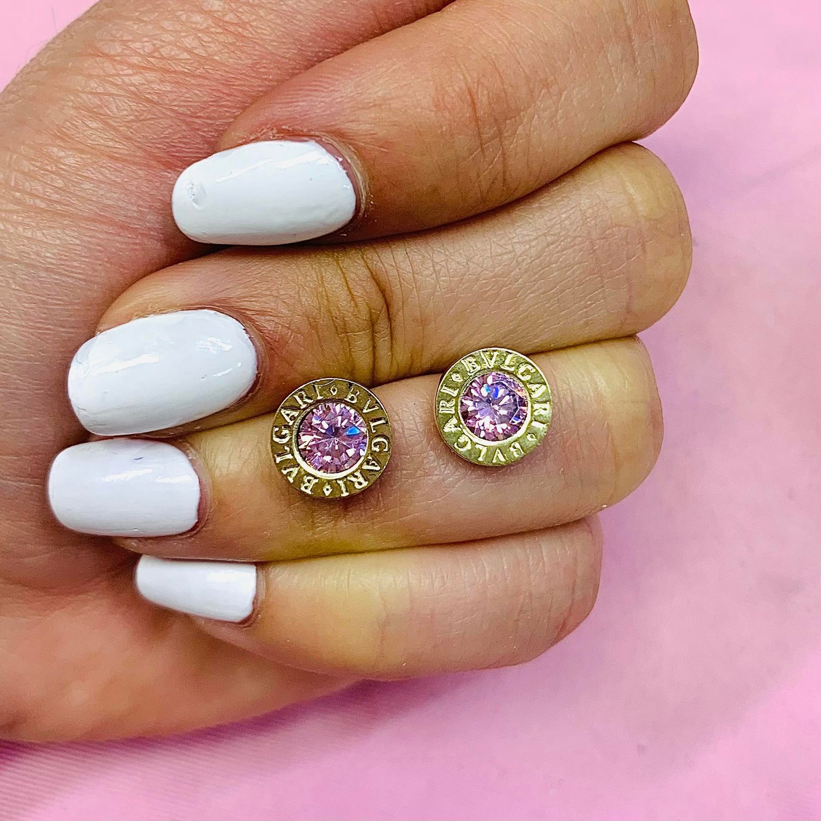 Aros BVL macizo redondo mediano rosa de Plata y Oro