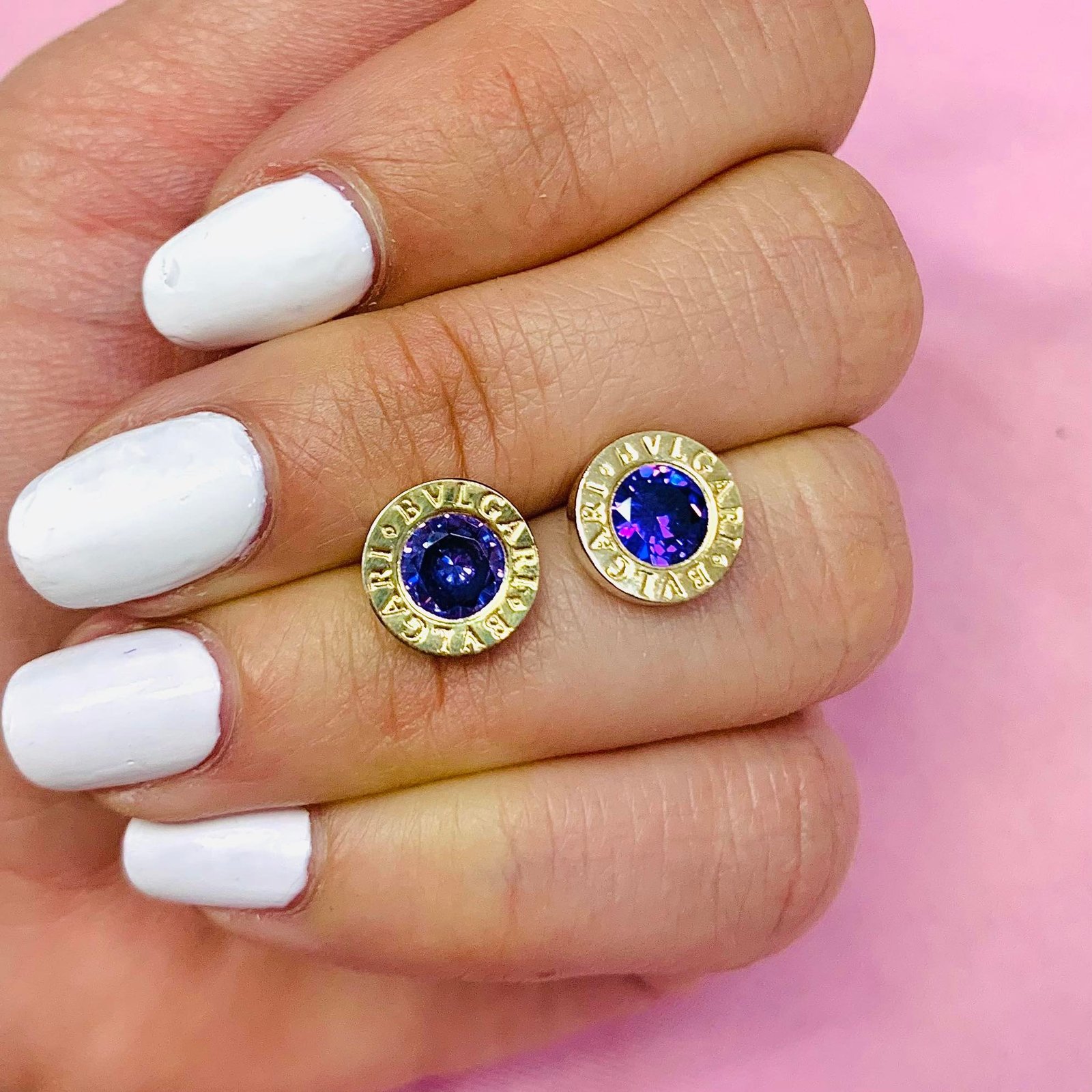 Aros BVL macizo redondo mediano amatista de Plata y Oro