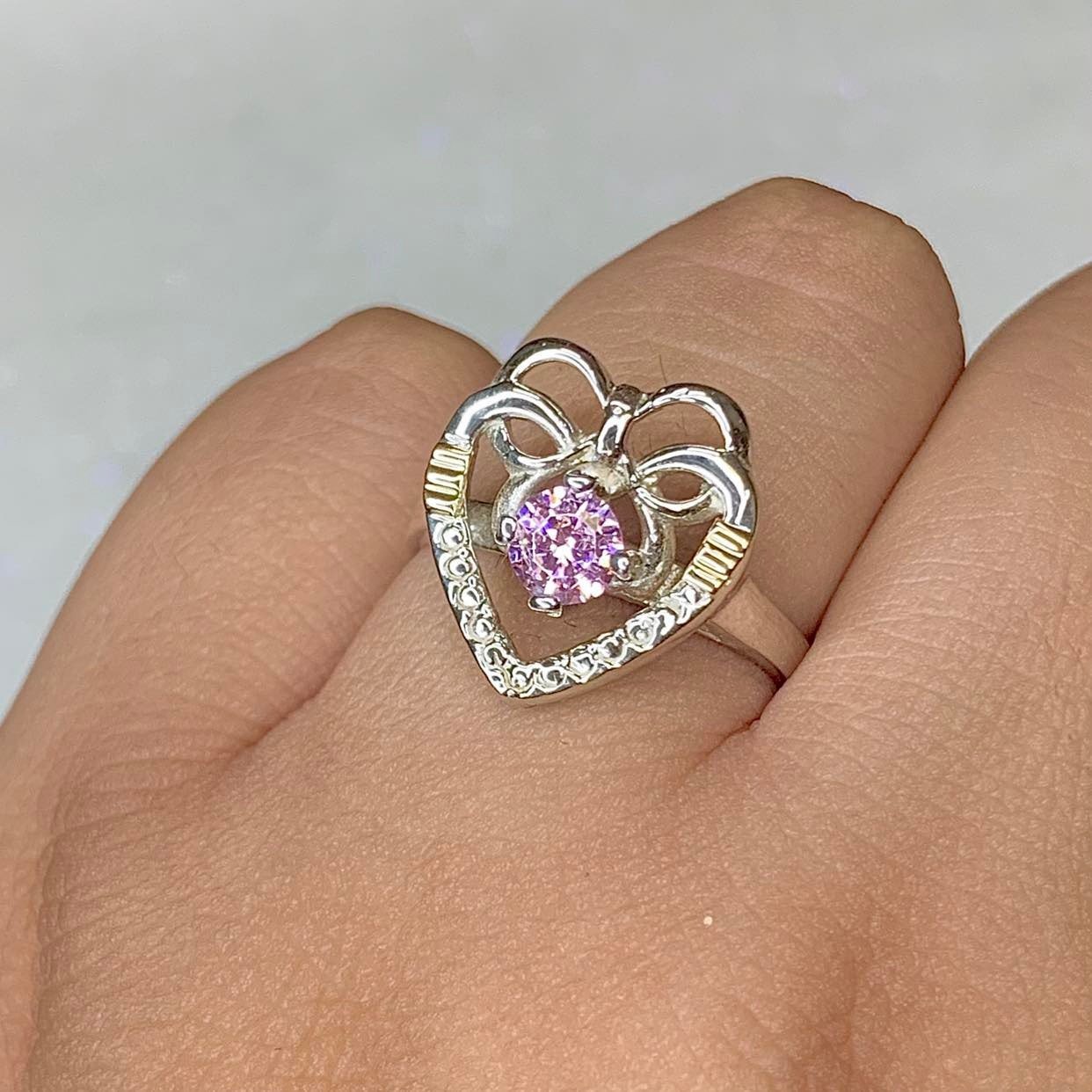 » Anillo Corazon Moño con Cubic Rosa de Plata y Oro