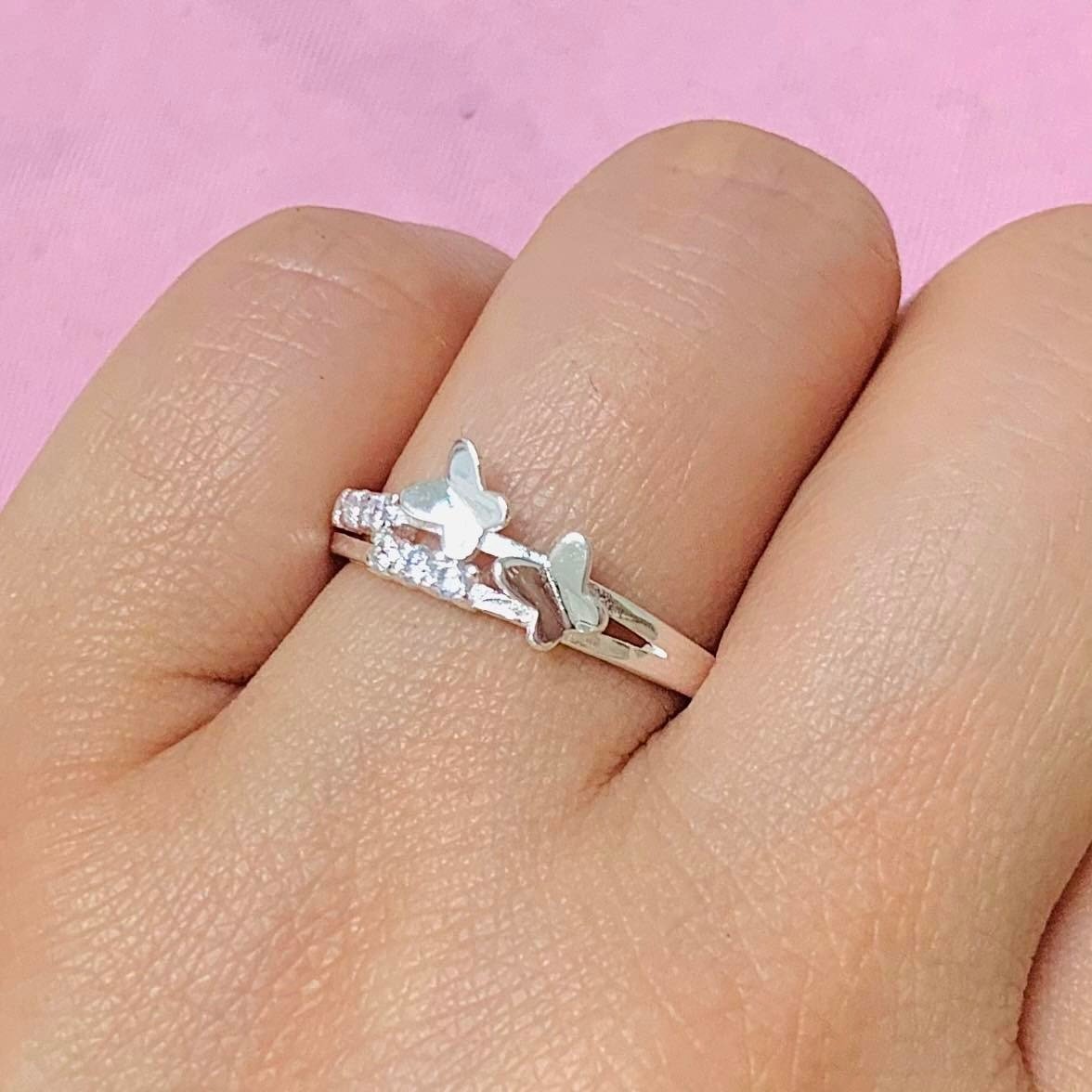 Aniillo dos mariposas con Micropave de Plata Italiana
