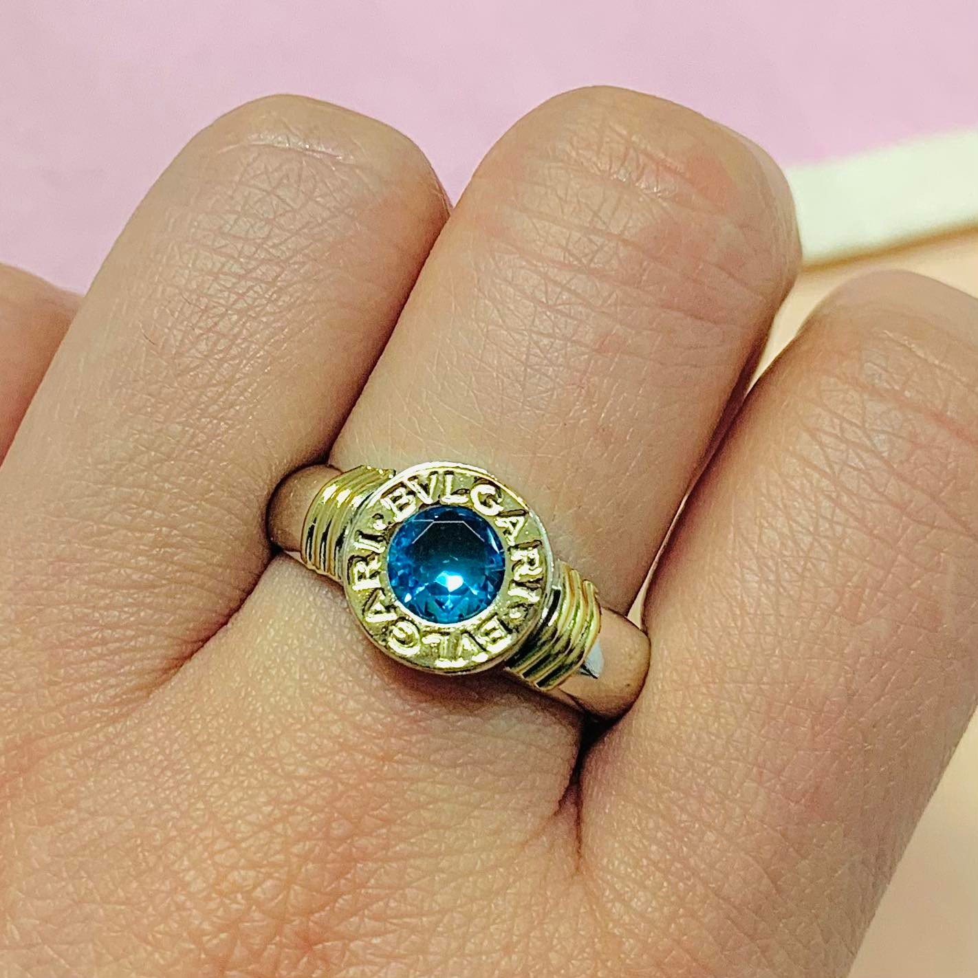 ANILLO BVLG redondo Mediano Celeste de Plata y oro