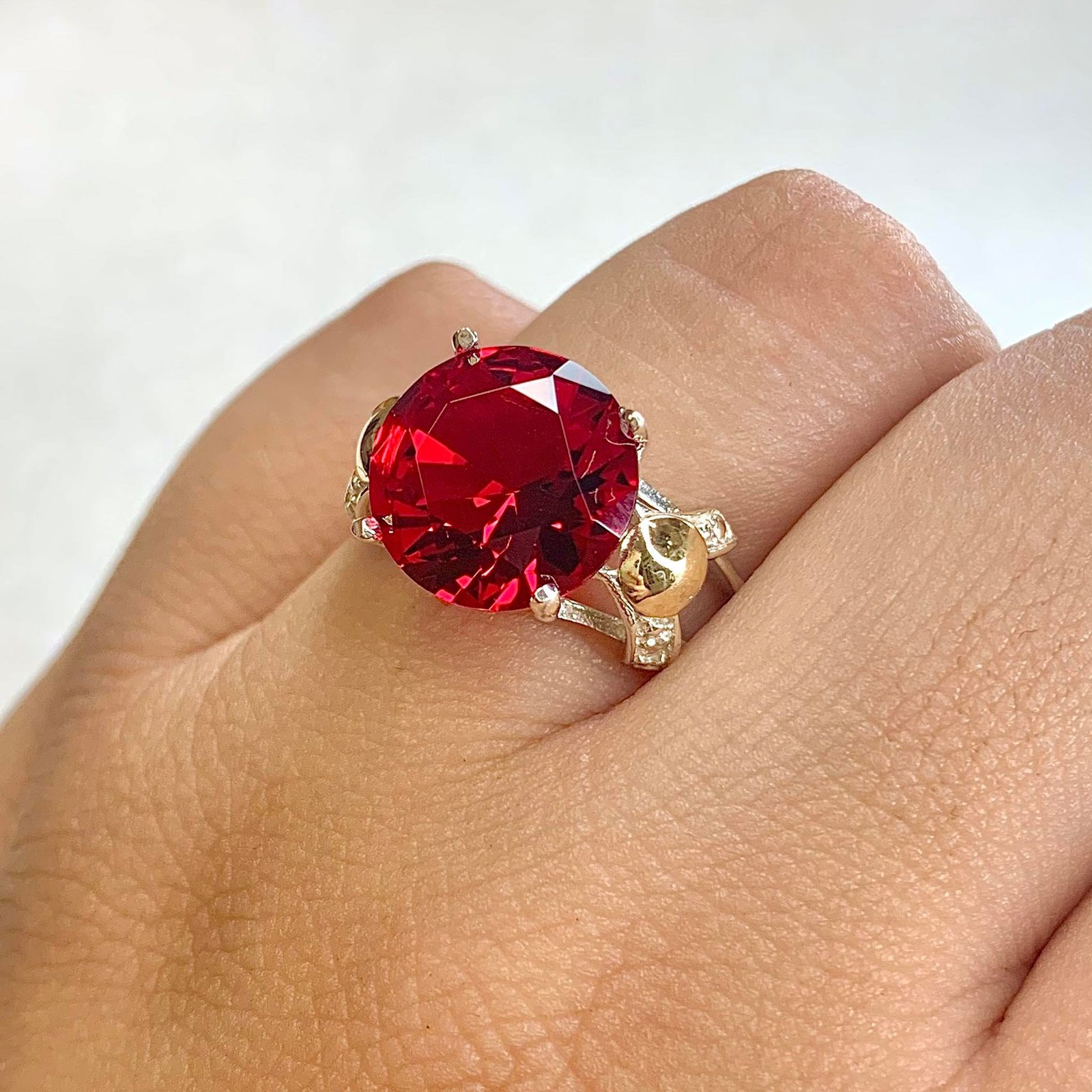 » anillo con cubic redondo Rubi de Plata y Oro