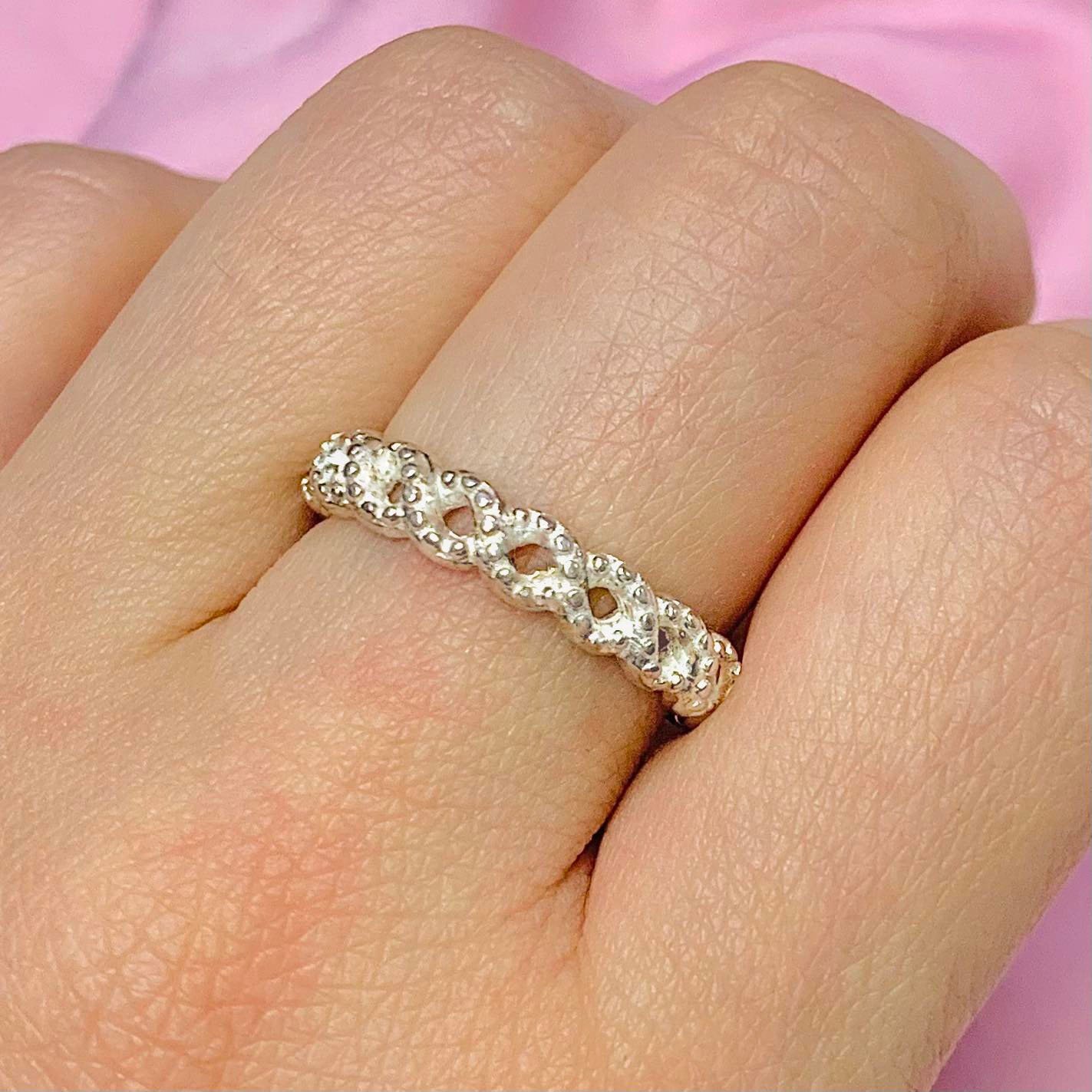 Anillo Infinito con medias Bolitas Plata 925