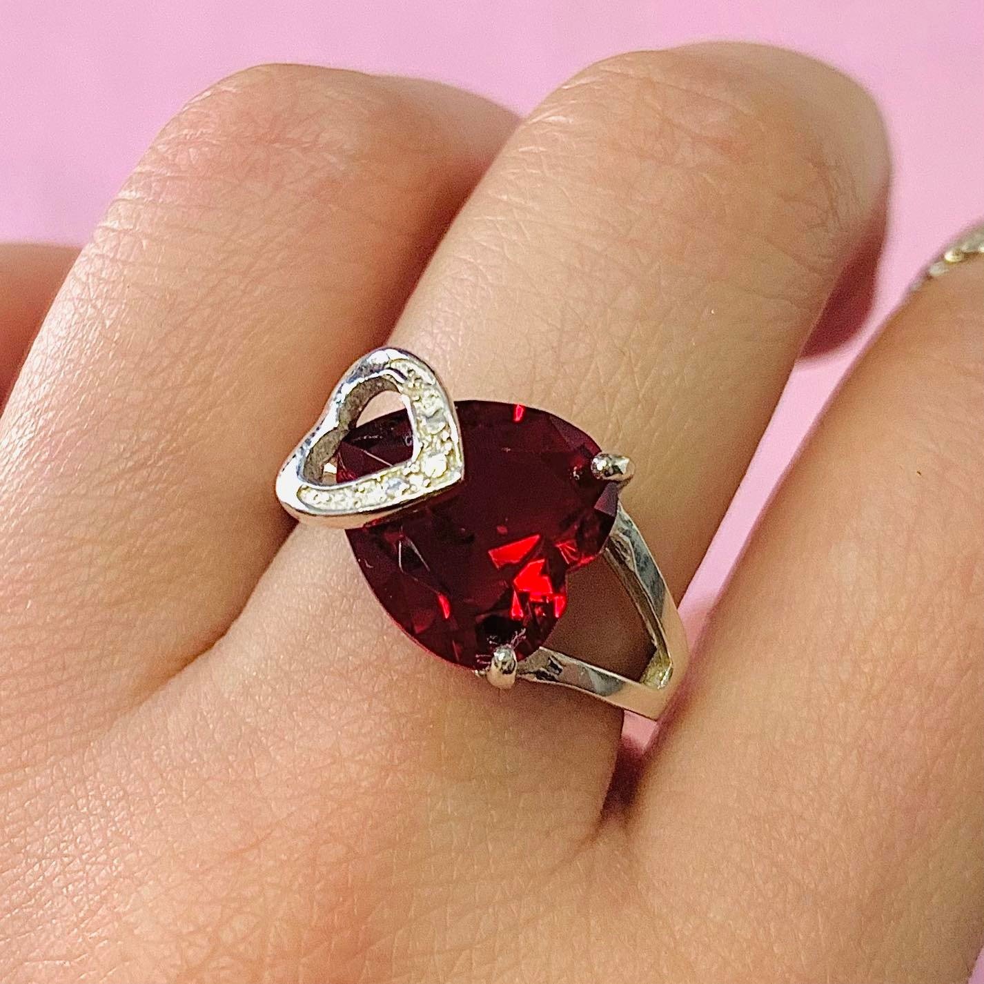 Anillo Romance con Piedra Corazon Rubi Plata 925