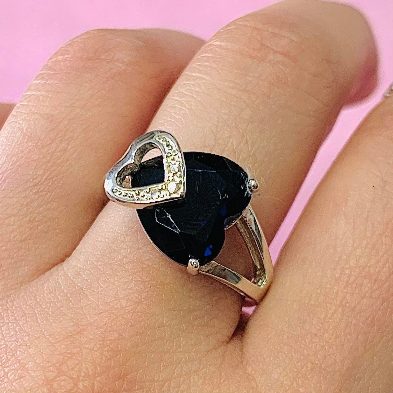 Anillo Romance con Piedra Corazon Azul Plata 925