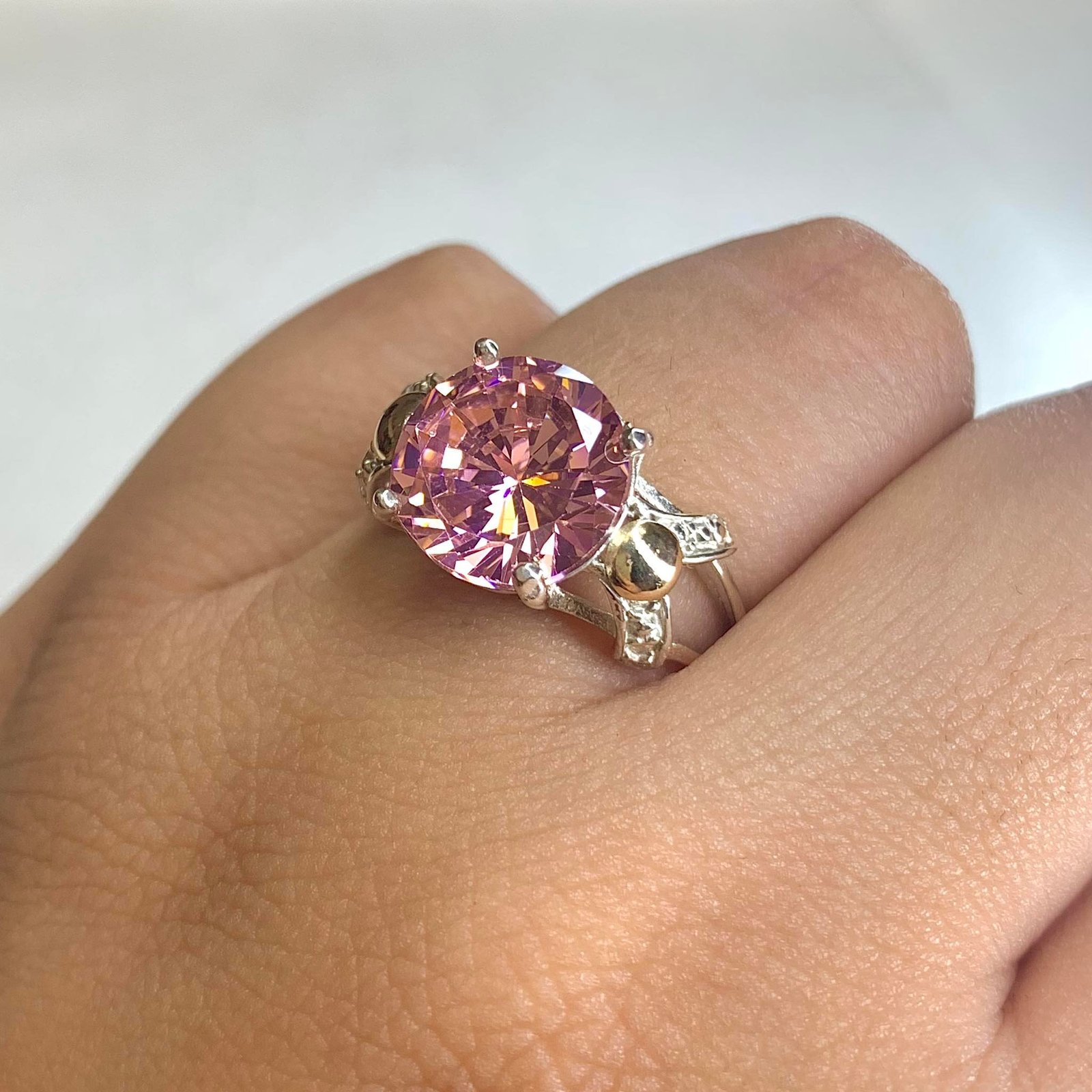 anillo con cubic redondo rosa de Plata y Oro