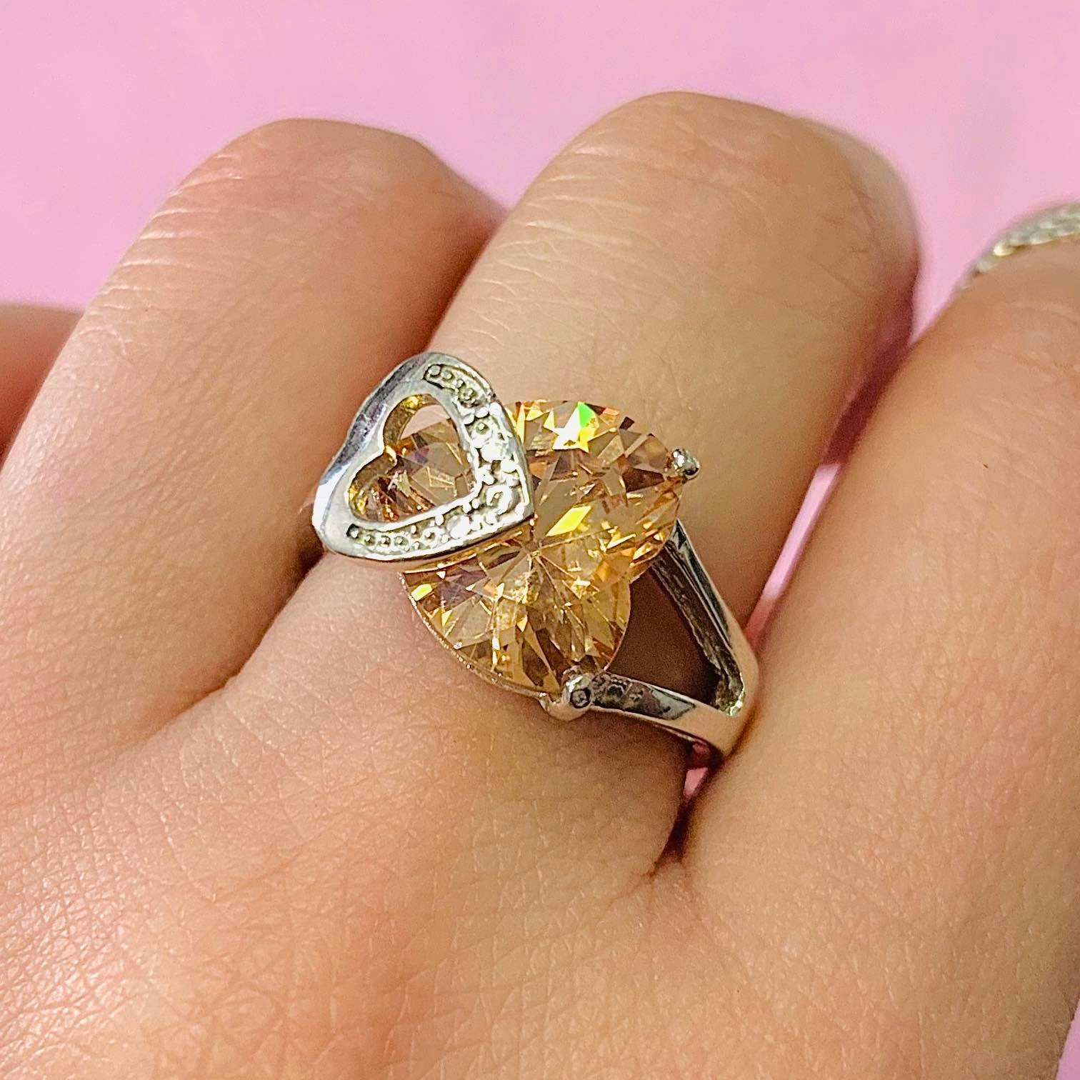 Anillo Romance con Piedra Corazon Ambar Plata 925