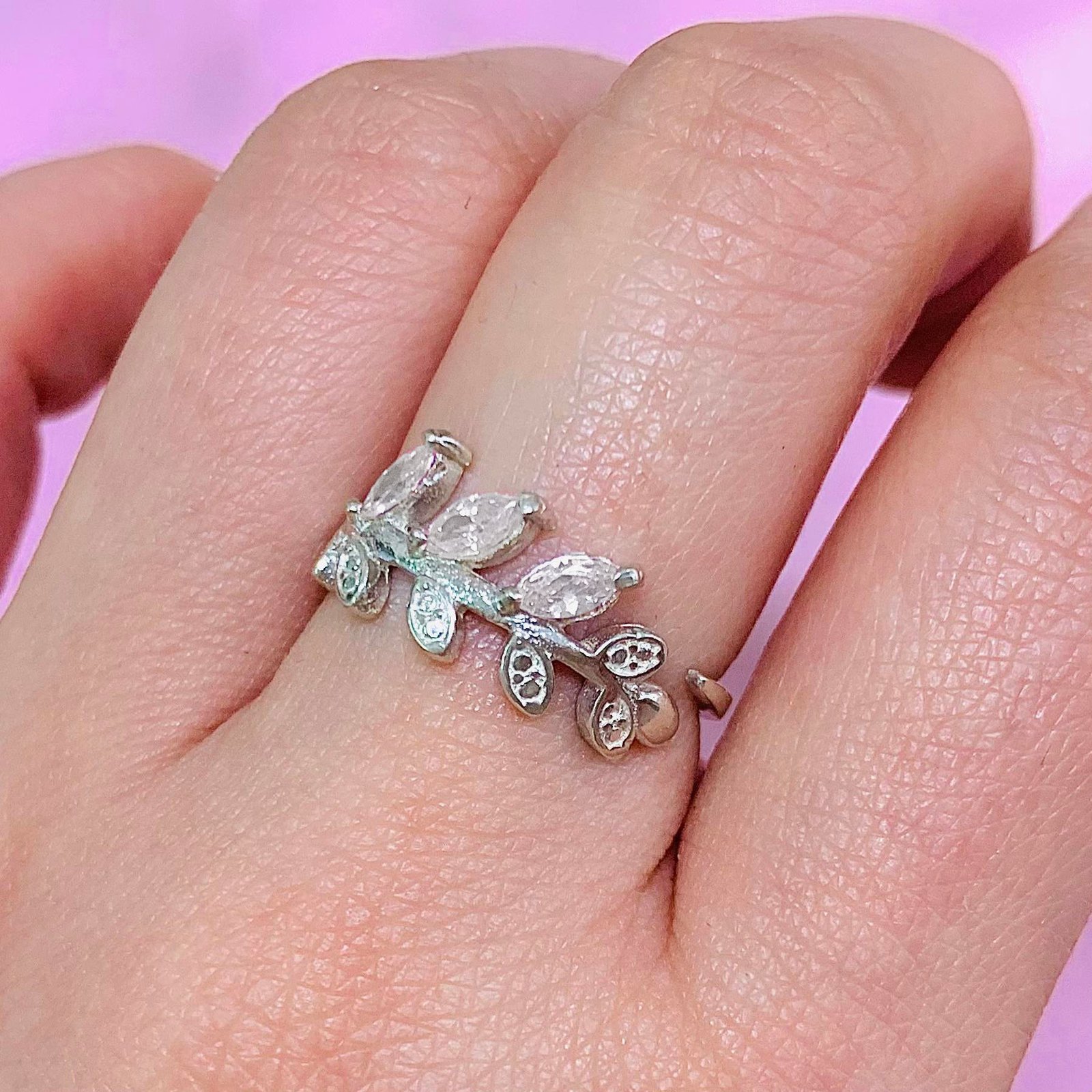 Anillo Hojas de Oliva Regulable con Piedras Blancas Plata 925