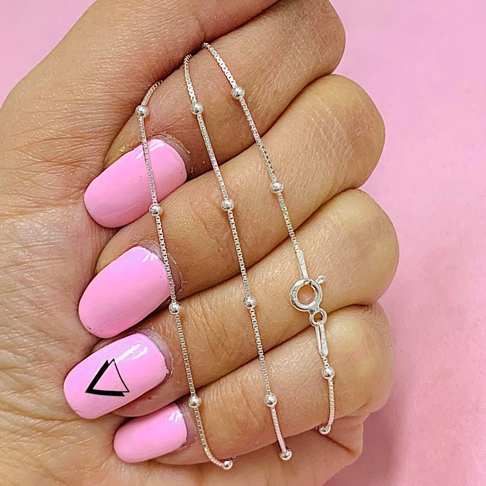 Cadena Veneziana Cuadrada con Bolitas Plata Italiana