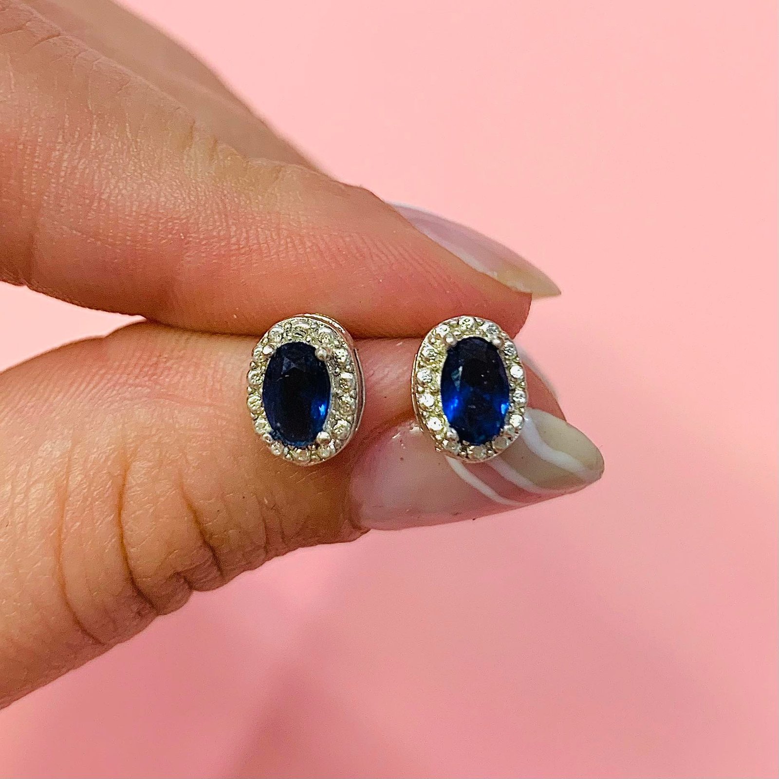 Aros Marta Oval con piedra Azul Plata 925