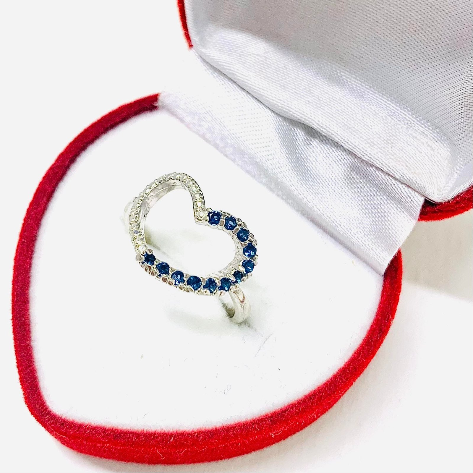 Anillo Corazon DUO con Piedras Zafiro de Plata 925