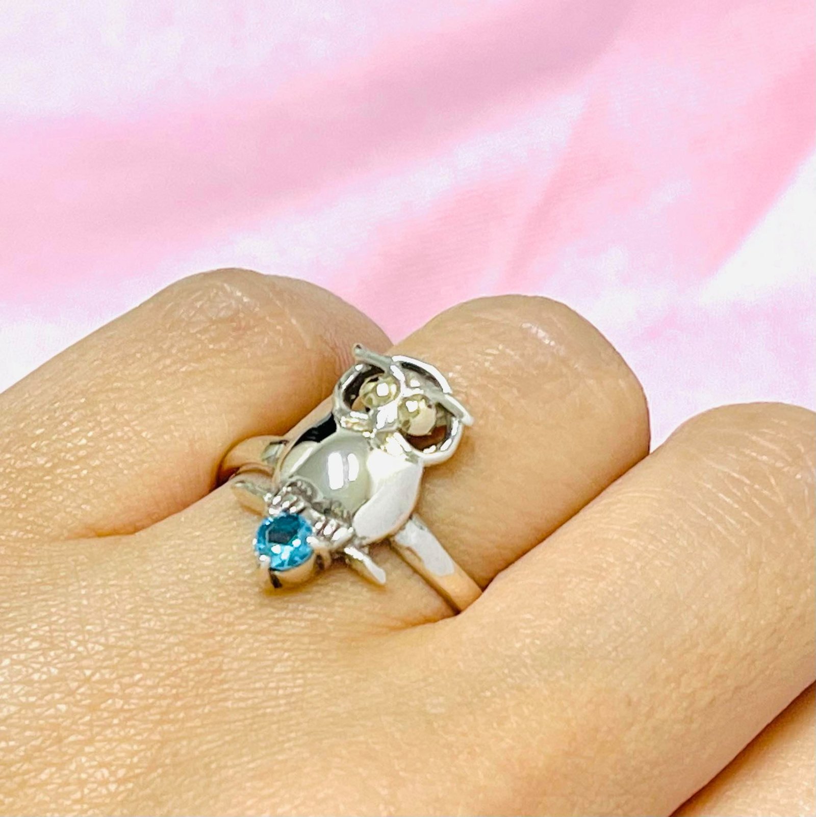 Anillo Buho con cubic aguamarina Plata y Oro