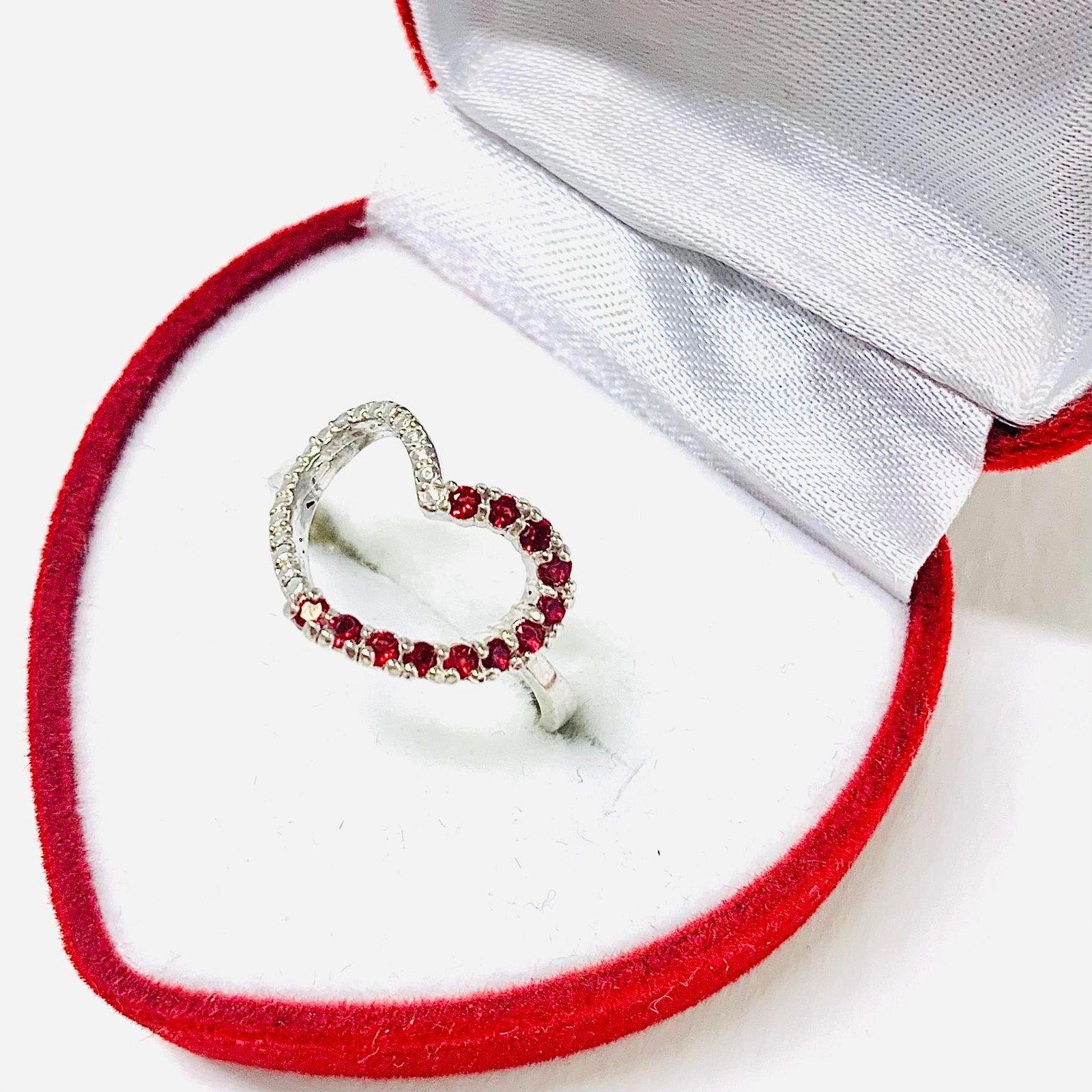 Anillo Corazon DUO con Piedras Rubi de Plata 925