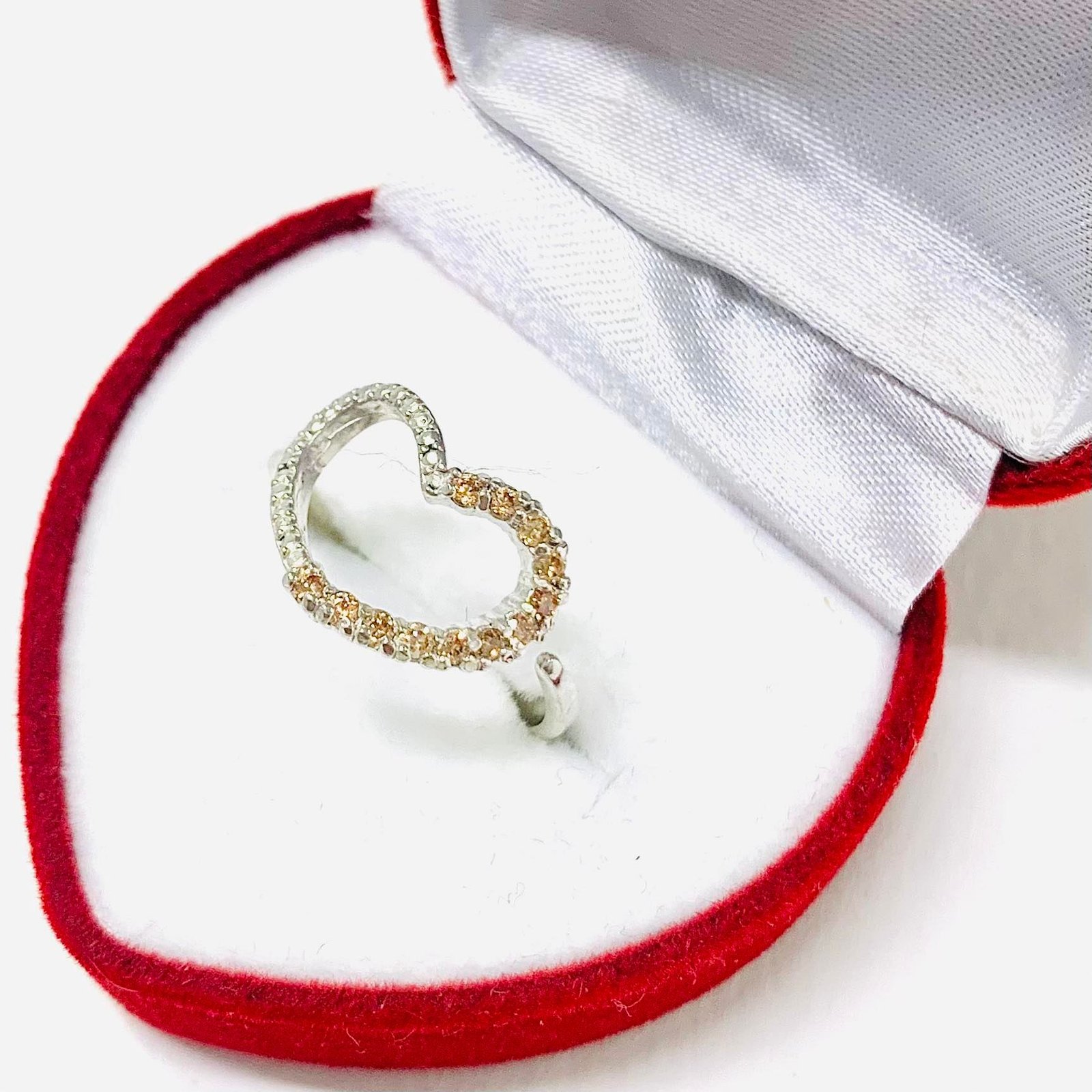 Anillo Corazon DUO con Piedras Ambar de Plata 925