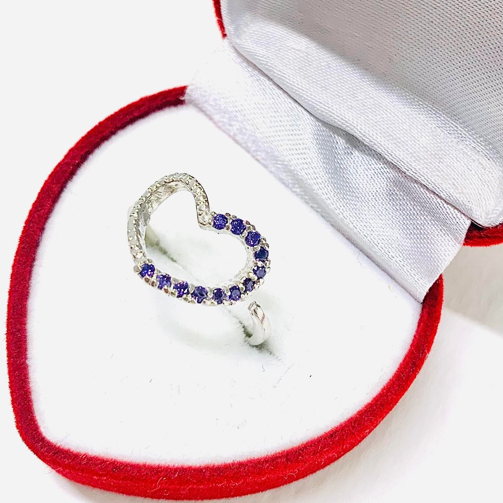Anillo Corazon DUO con Piedras Violeta de Plata 925