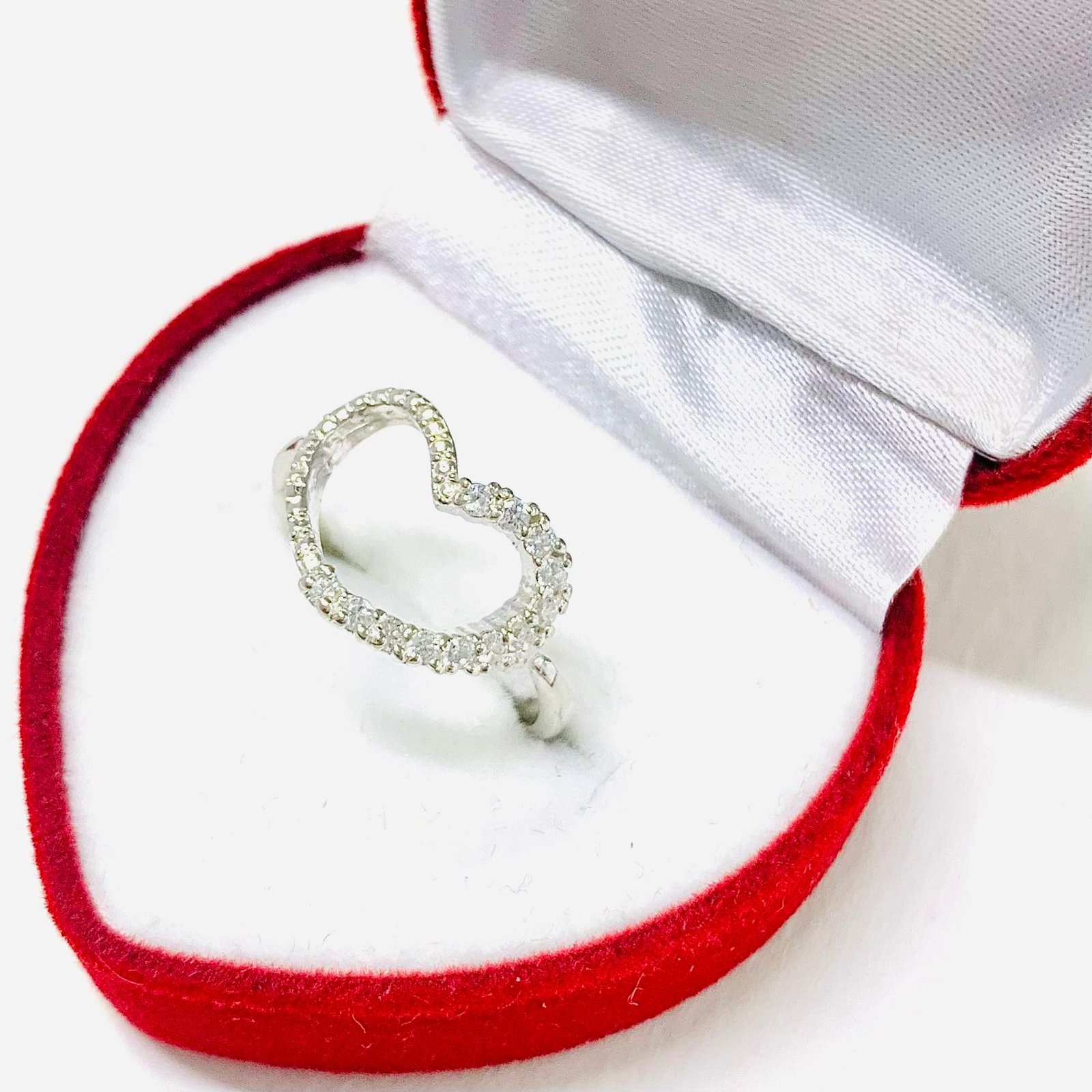 Anillo Corazon DUO con Piedras Blancas de Plata 925