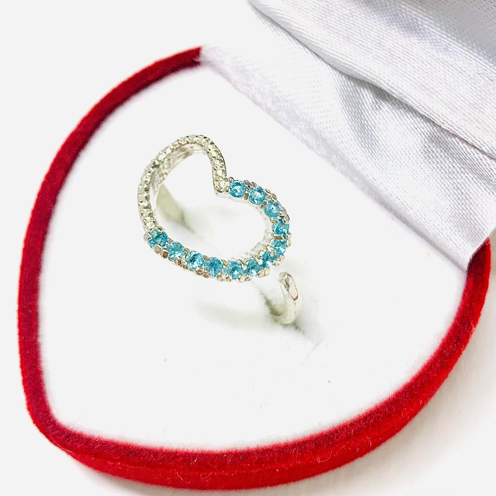 Anillo Corazon DUO con Piedras Celeste de Plata 925