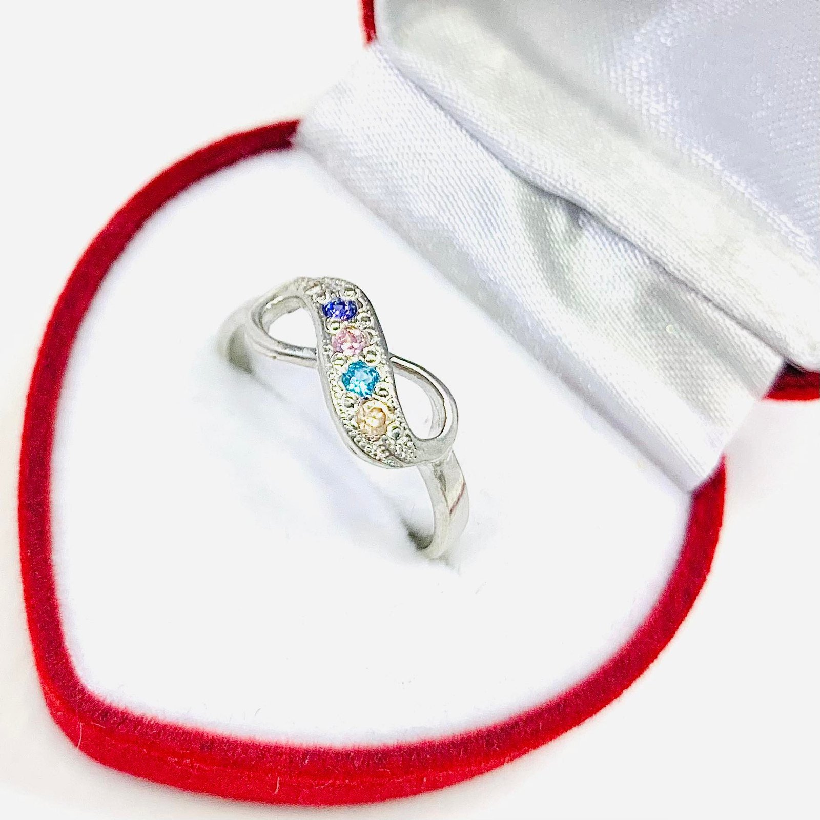 Anillo infinito con cuatro Piedras Multicolor de Plata 925