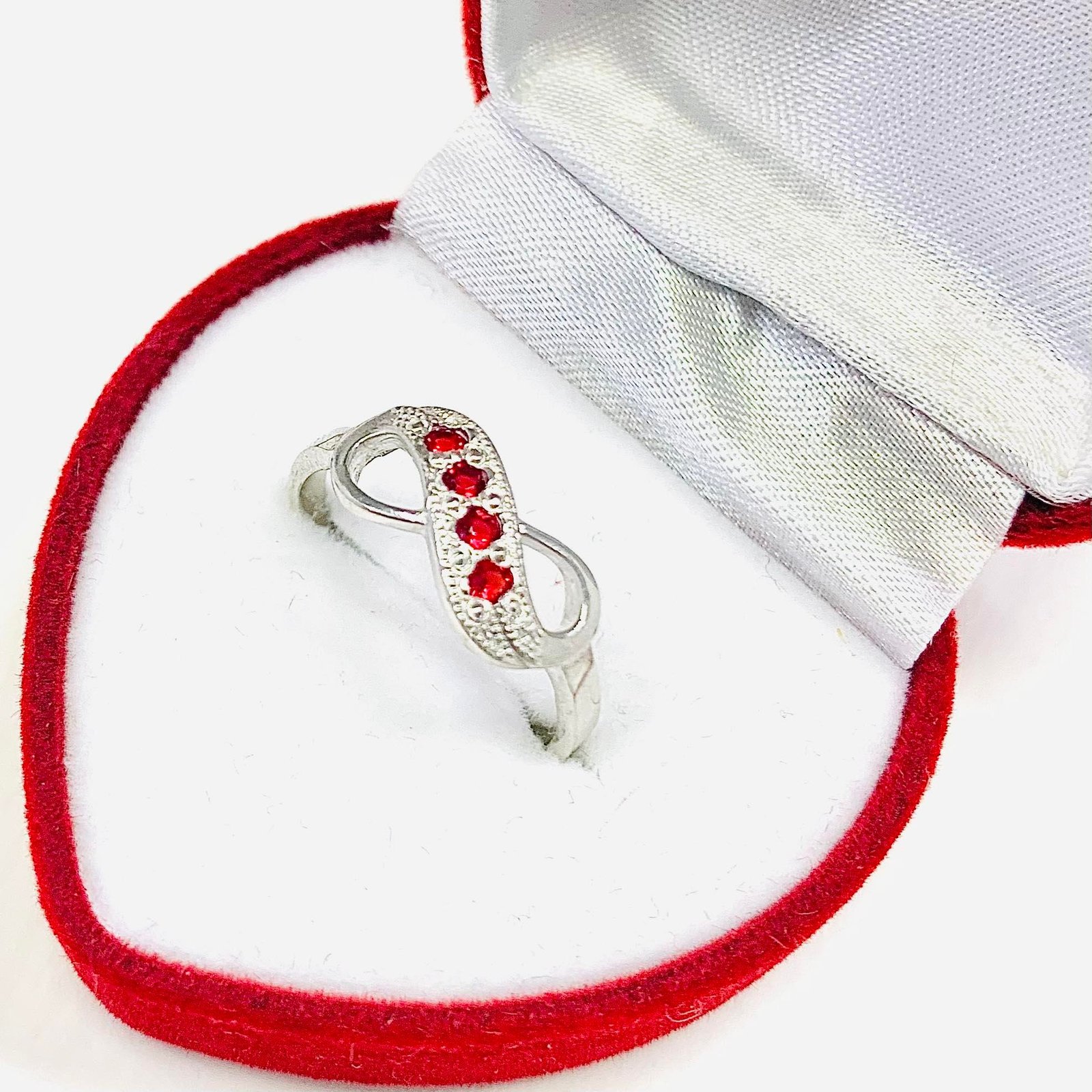Anillo infinito con cuatro Piedras Rubi de Plata 925