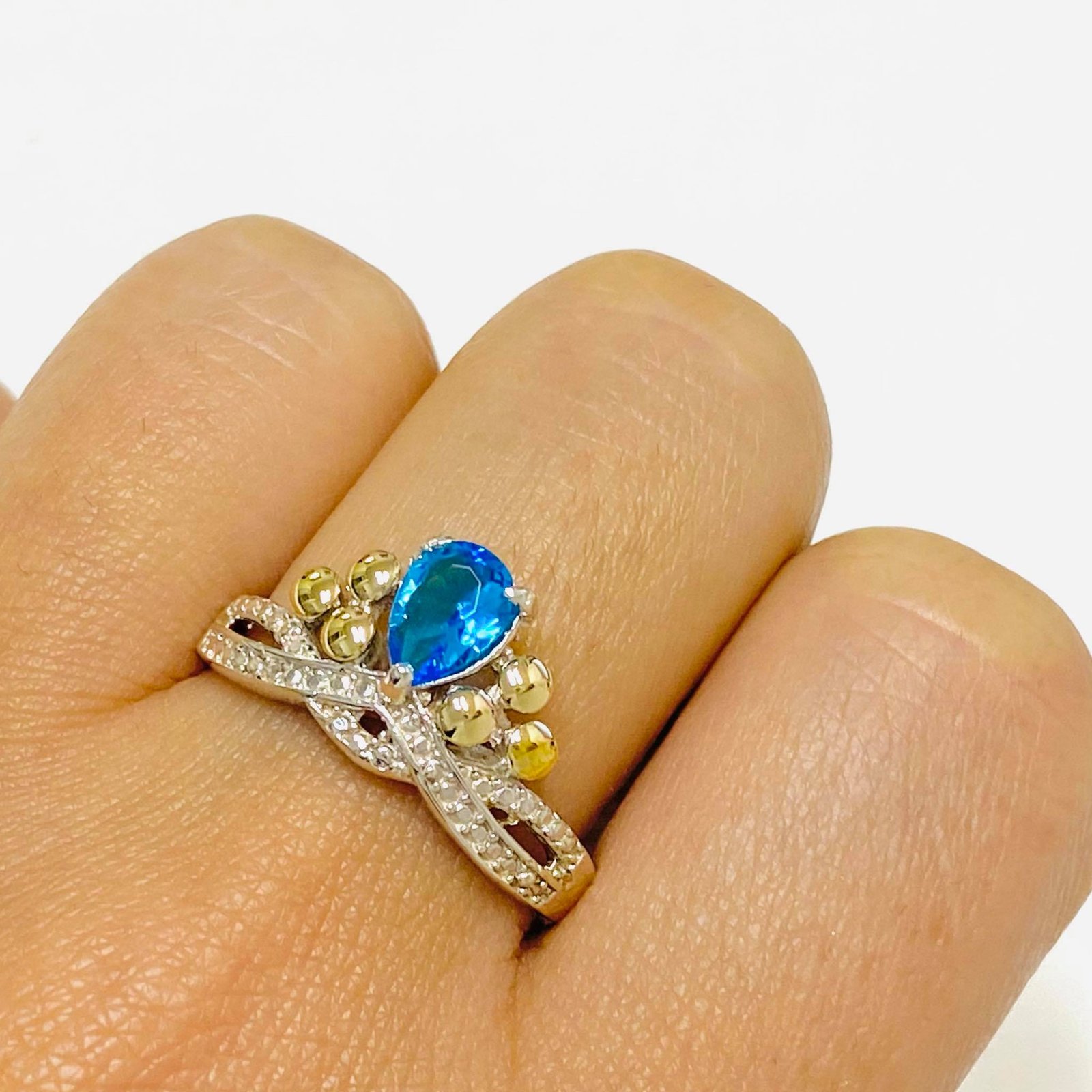 Artículo: AP 120-1Anillo tiara corona con cubic gotita Agua marina