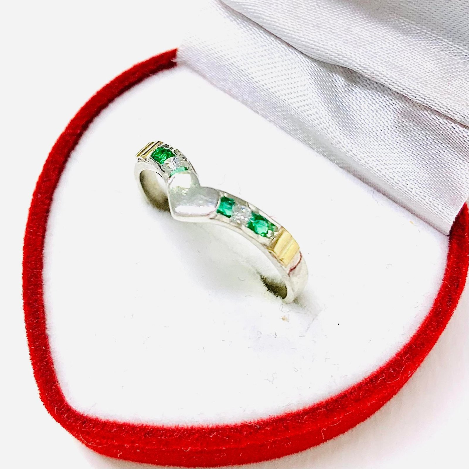 Artículo: AP 355-3Anillo Medio sin fin Blanco y verde con Corazon Plata y Oro