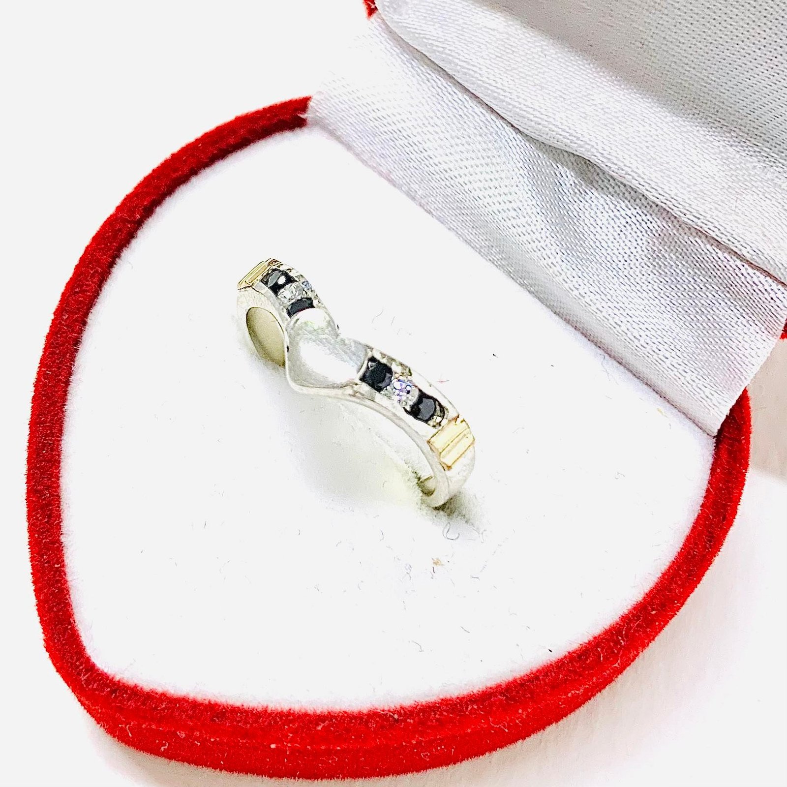 Anillo Medio sin fin Blanco y negro con Corazon Plata y Oro