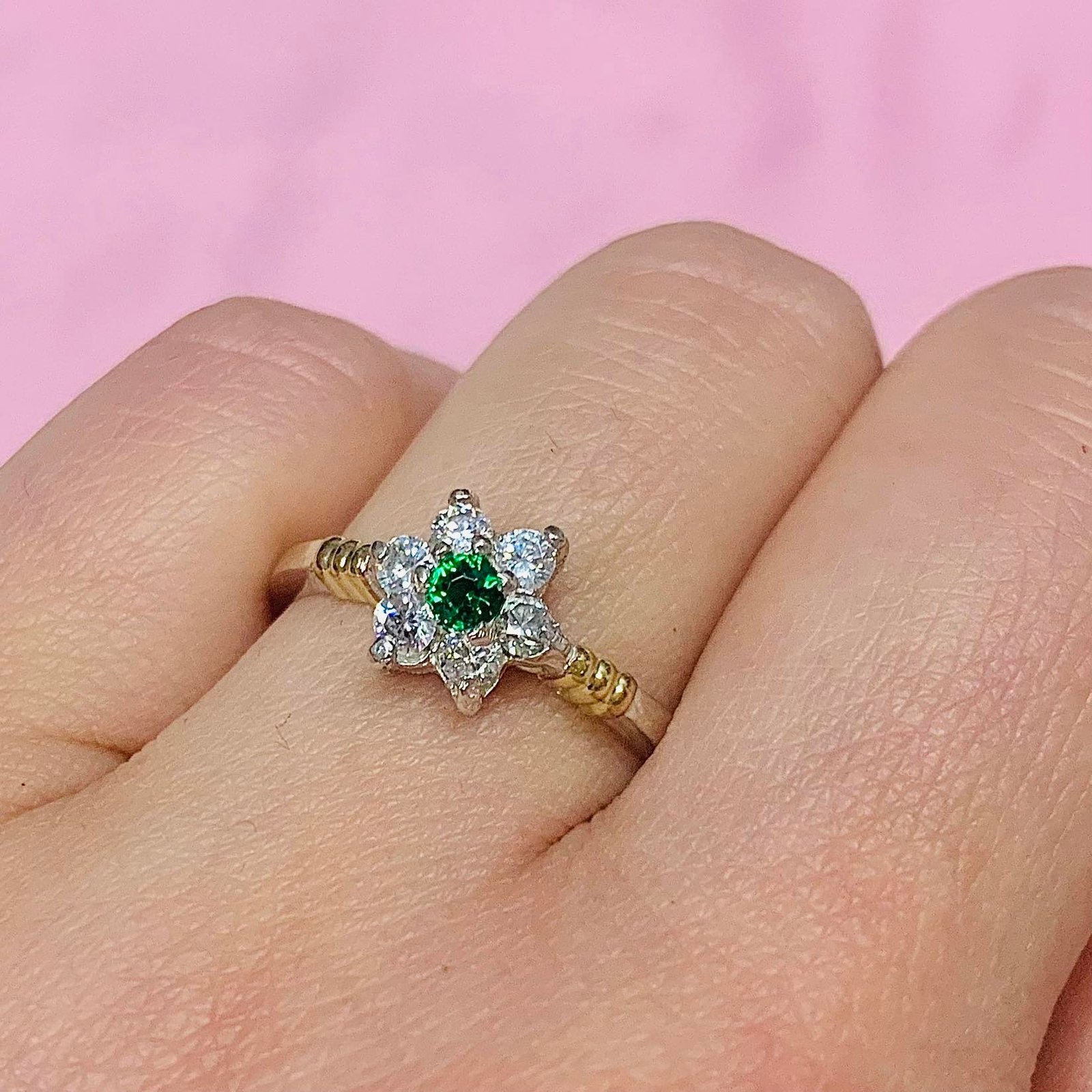 Anillo Roseta Blanco y centro verde Plata y Oro