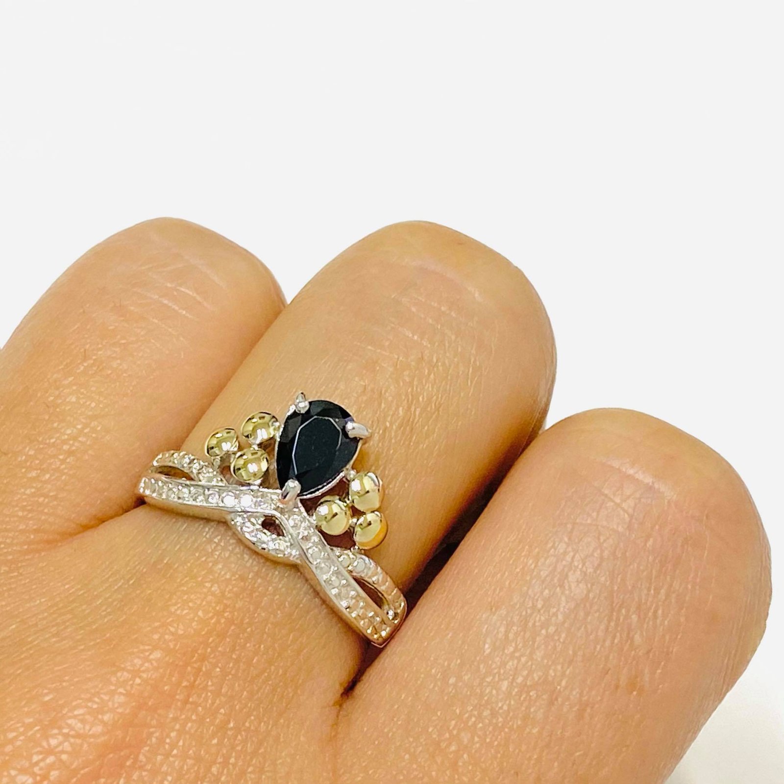 Artículo: AP 120-3Anillo tiara corona con cubic gotita negro