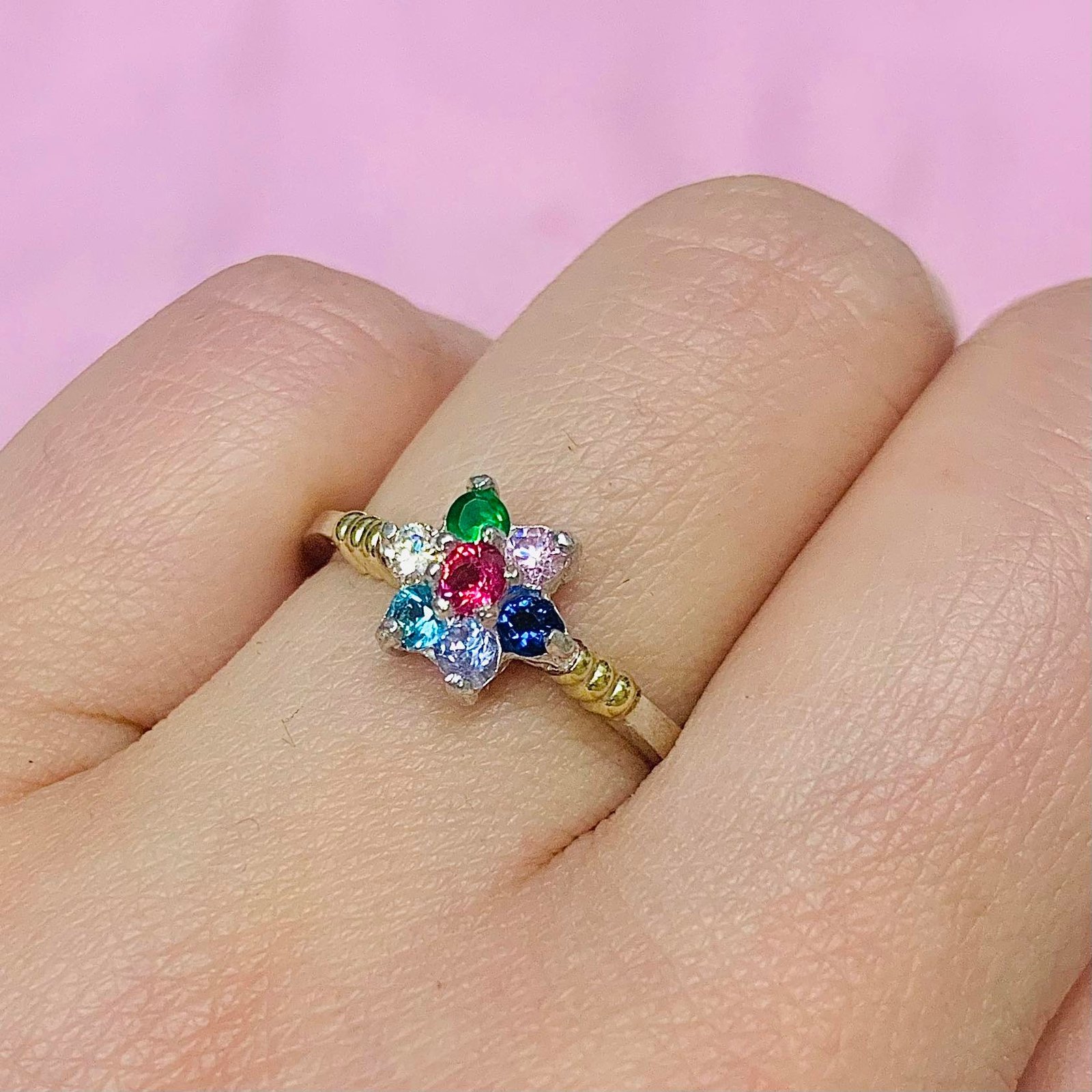 Artículo: AP 356-6Anillo Roseta Multicolor Plata y Oro