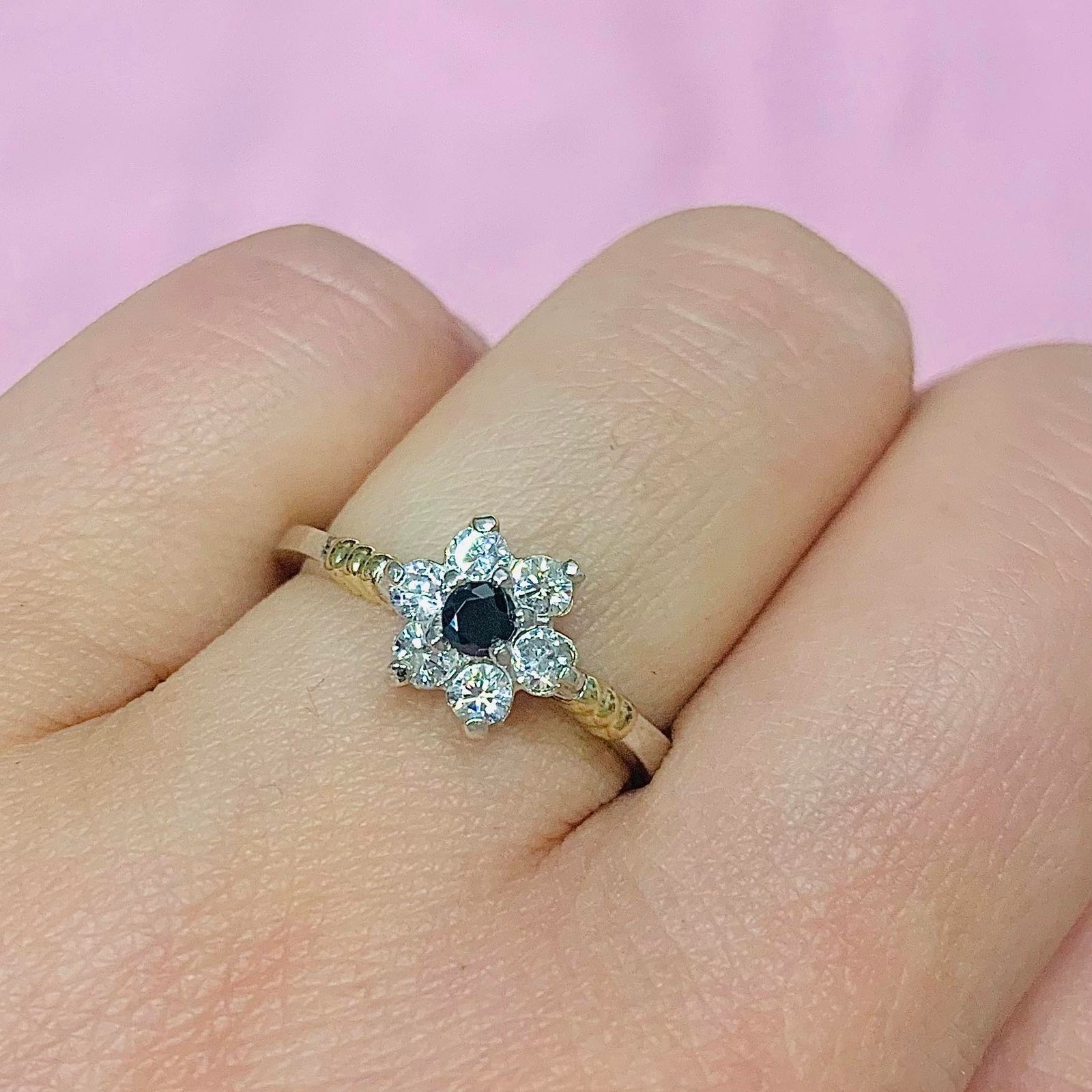Anillo Roseta Blanco y centro negro Plata y Oro