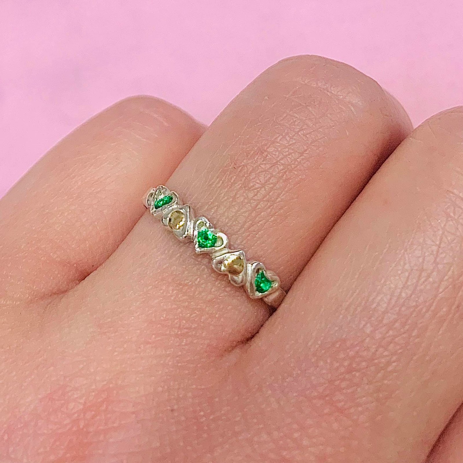 Anillo Cadena de Corazones Verde de Plata 925