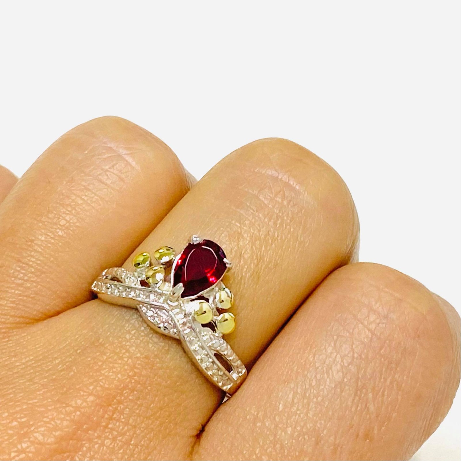 Artículo: AP 120-5Anillo tiara corona con cubic gotita Rubi