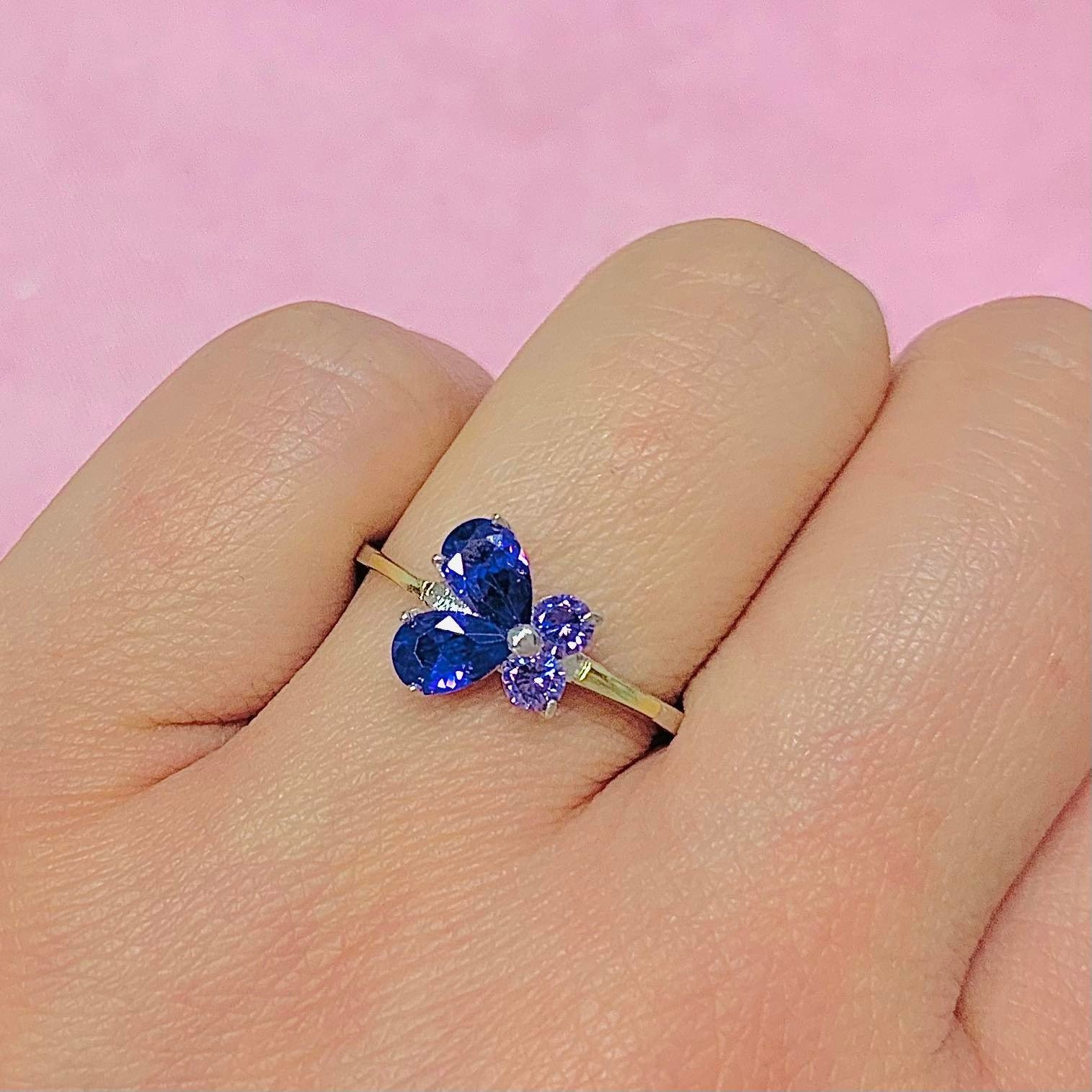 Anillo Mariposa Piedras engarzadas Azul y Violeta de plata y Oro