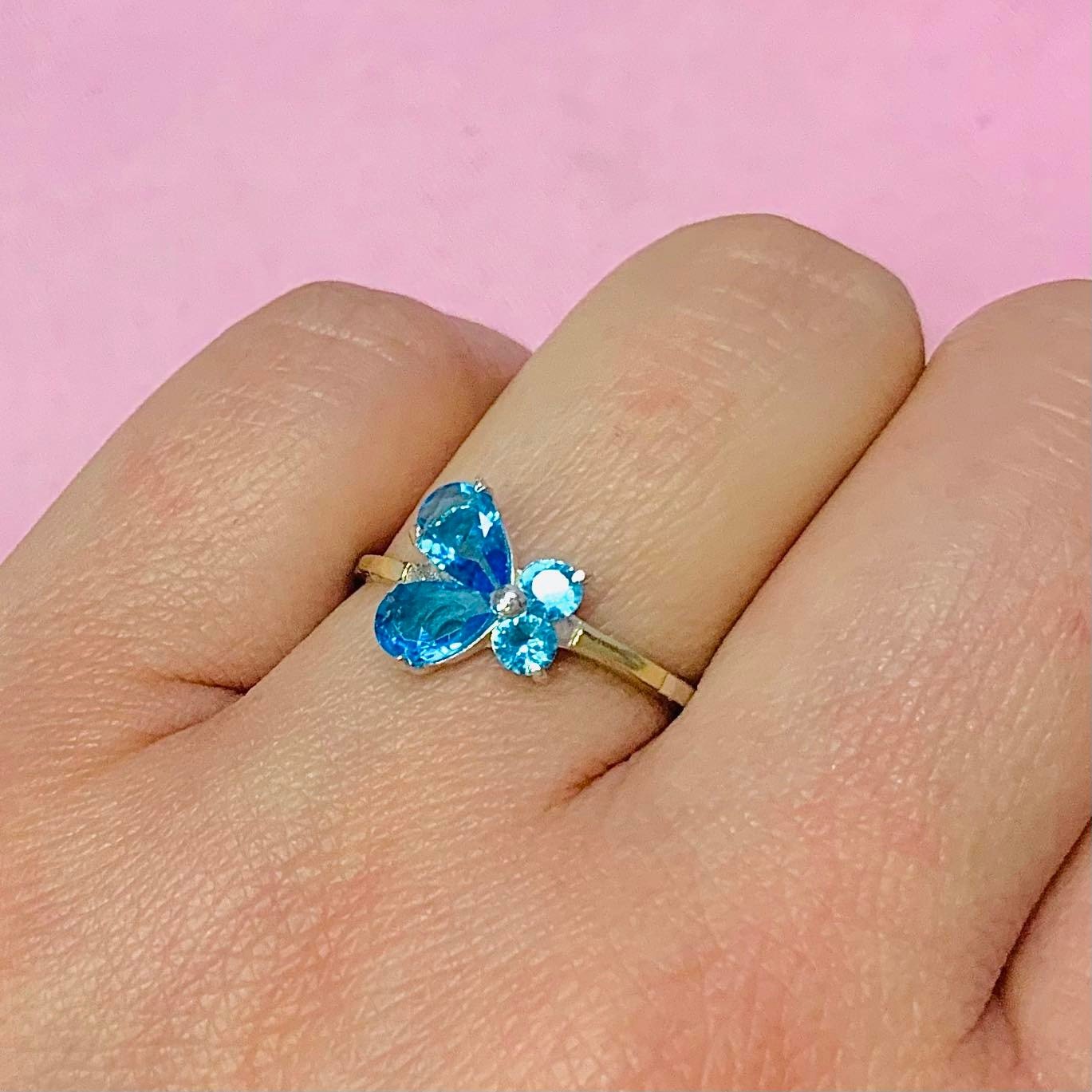 Anillo Mariposa Piedras engarzadas Celeste de plata y Oro