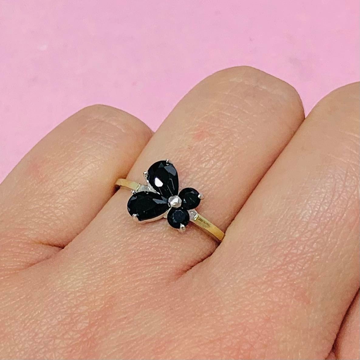 Anillo Mariposa Piedras engarzadas Negro de plata y Oro