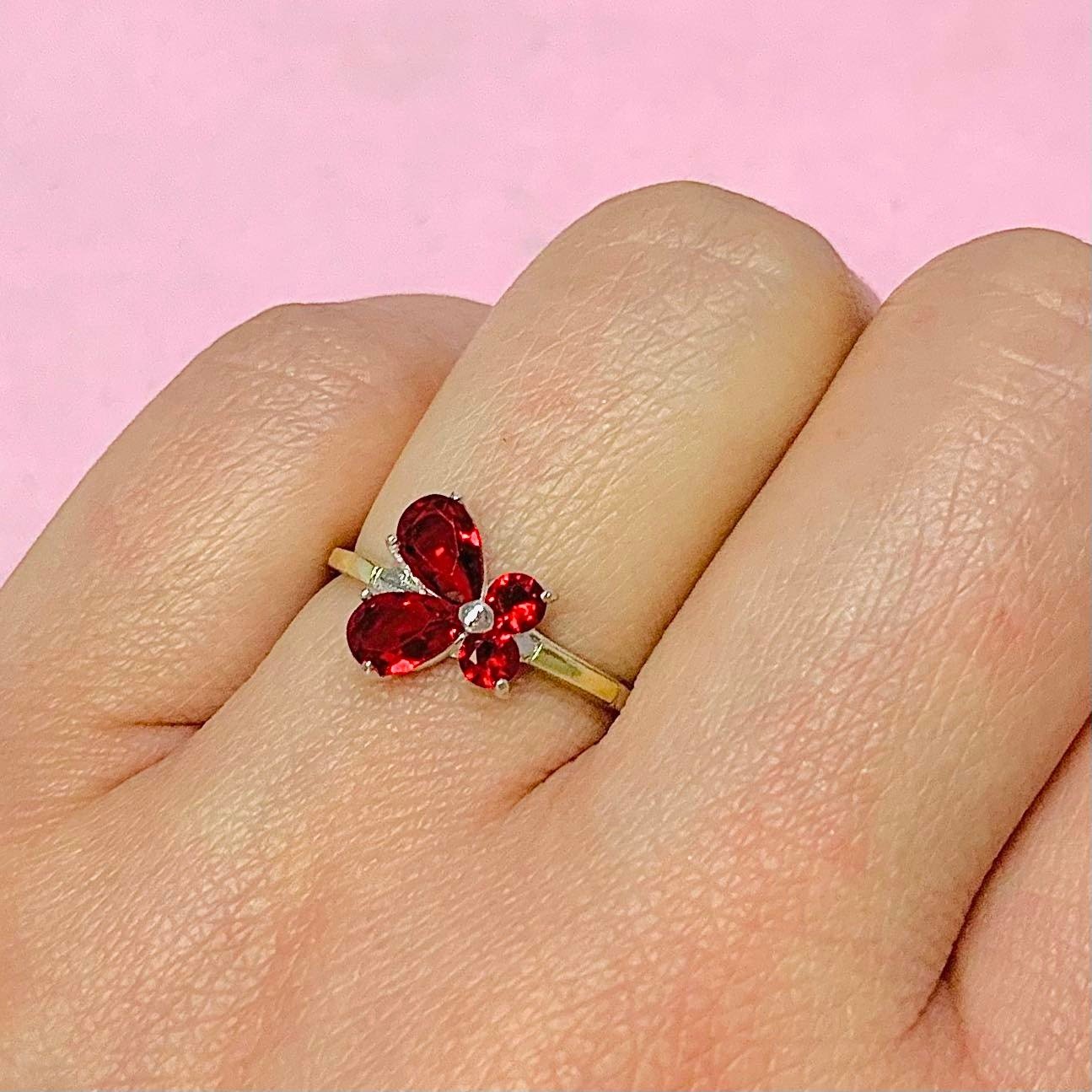 Anillo Mariposa Piedras engarzadas Rojo de plata y Oro