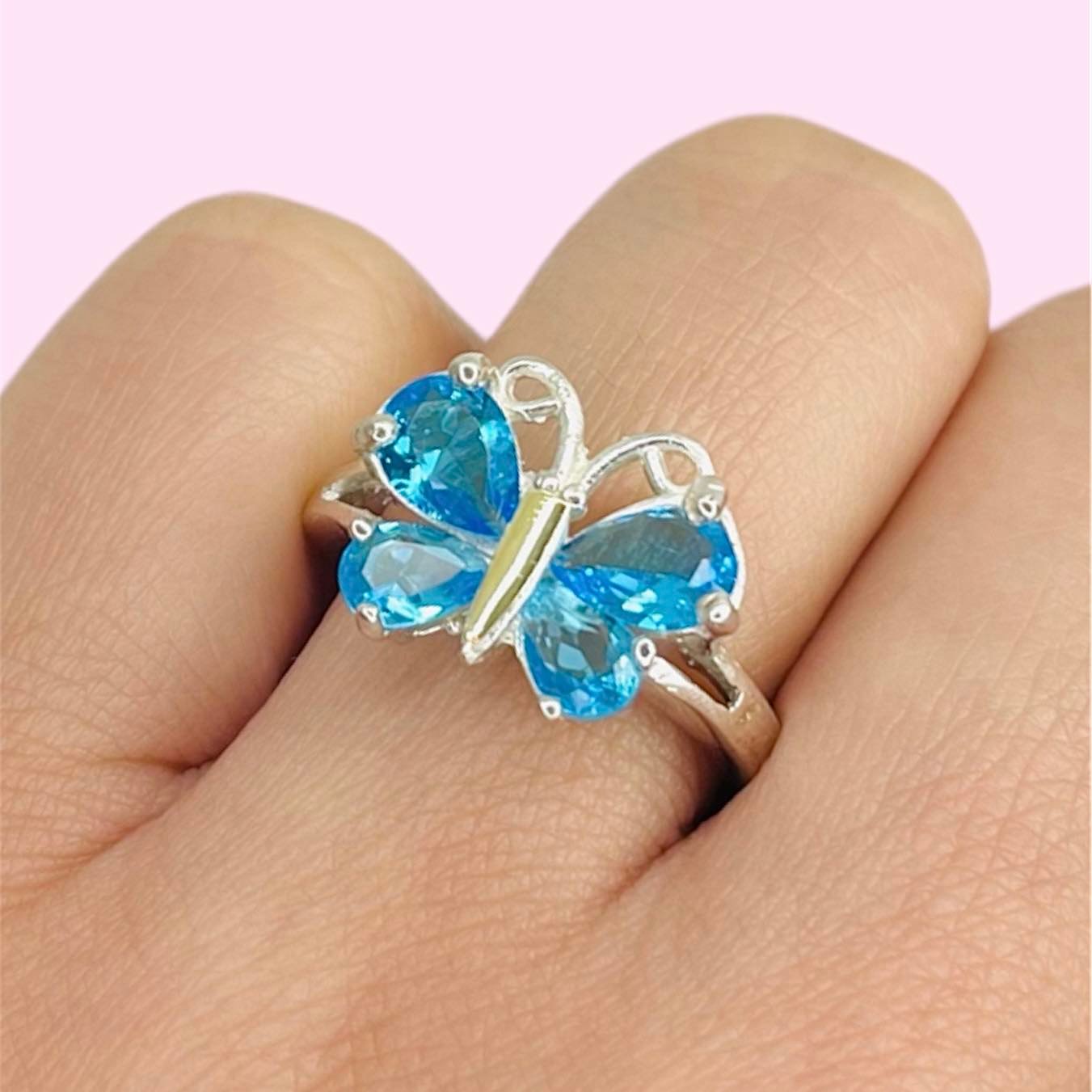 Anillo mariposa con cubic Agua marina de Plata y Oro