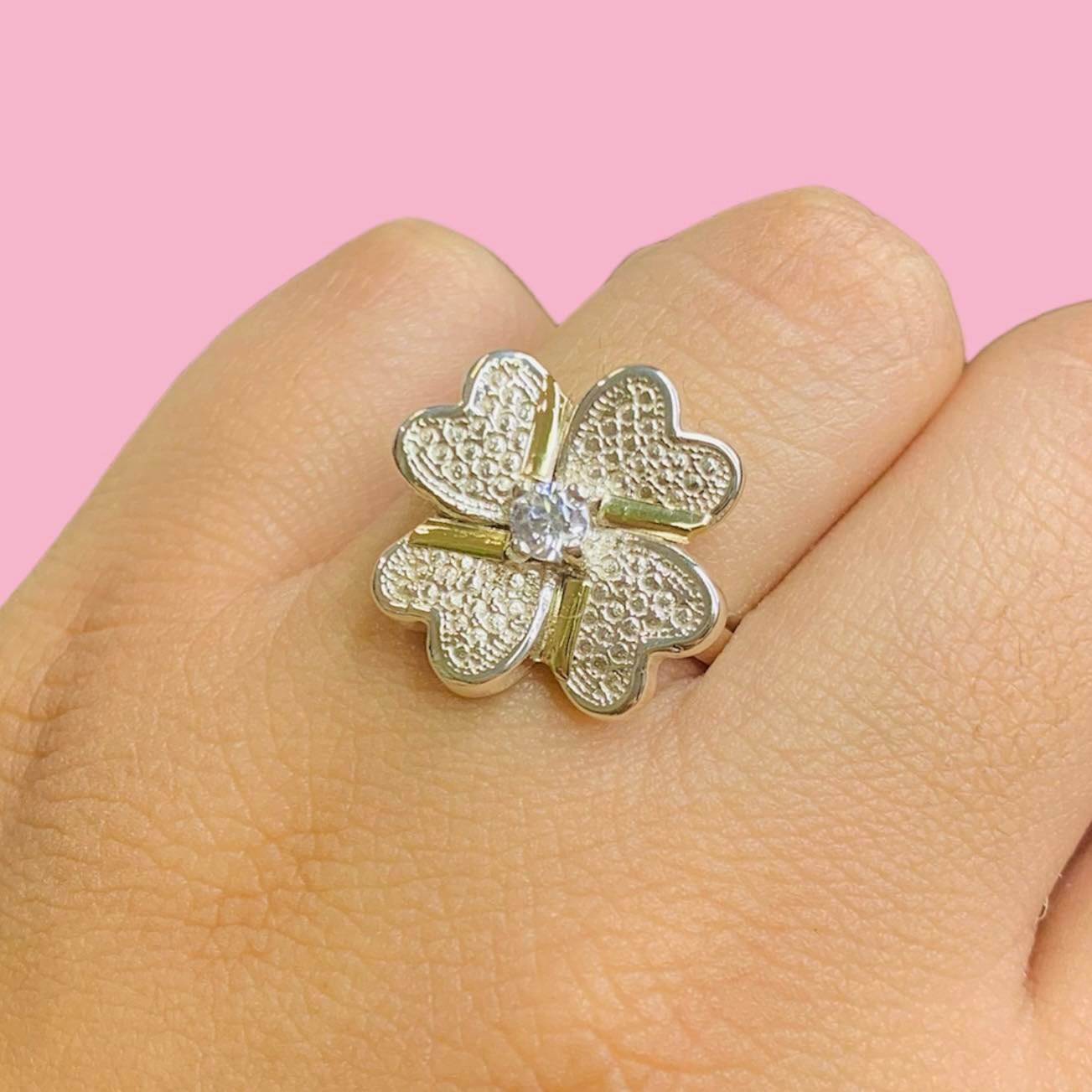 Anillo Trebol blanco de Plata y Oro