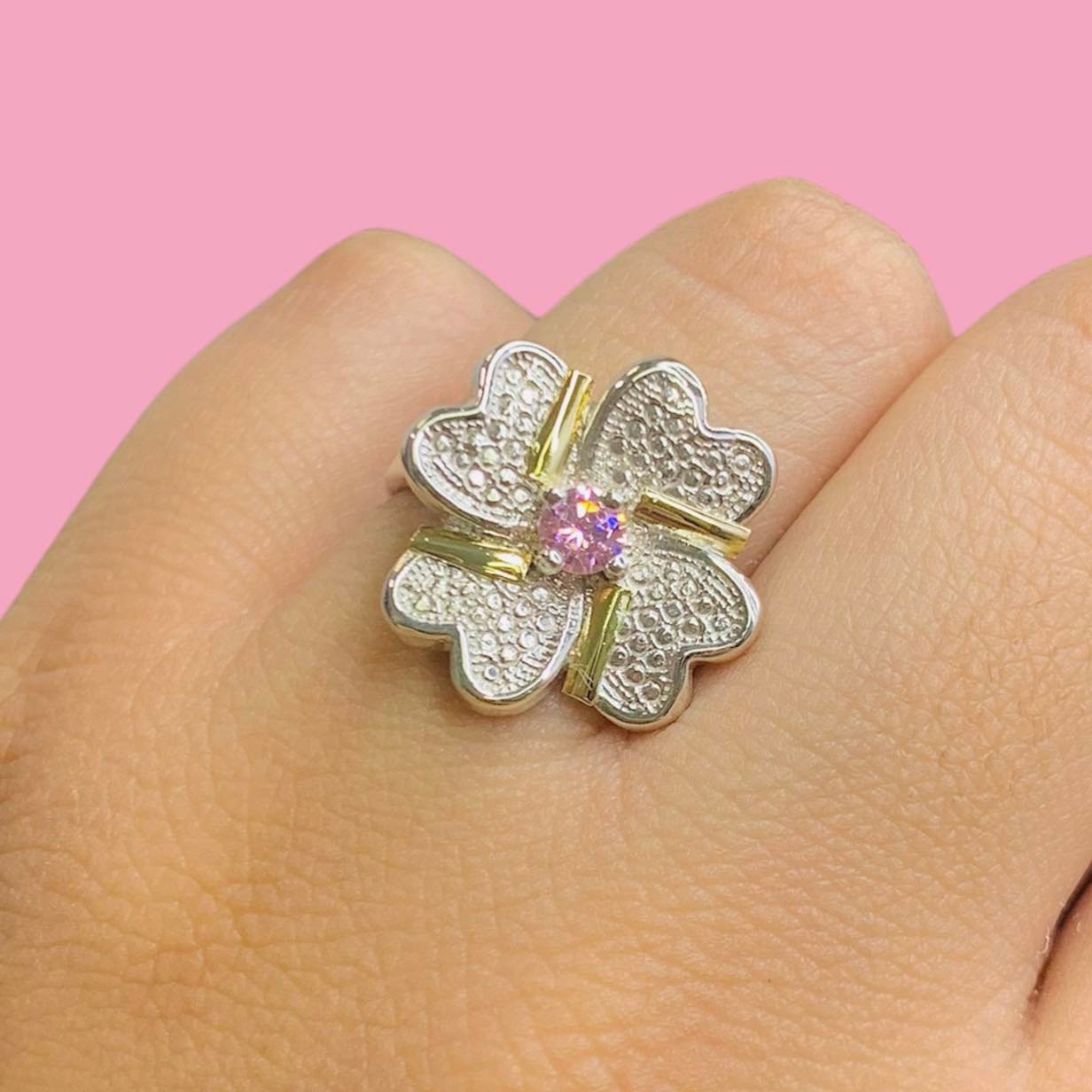 » Anillo Trebol rosa de Plata y Oro