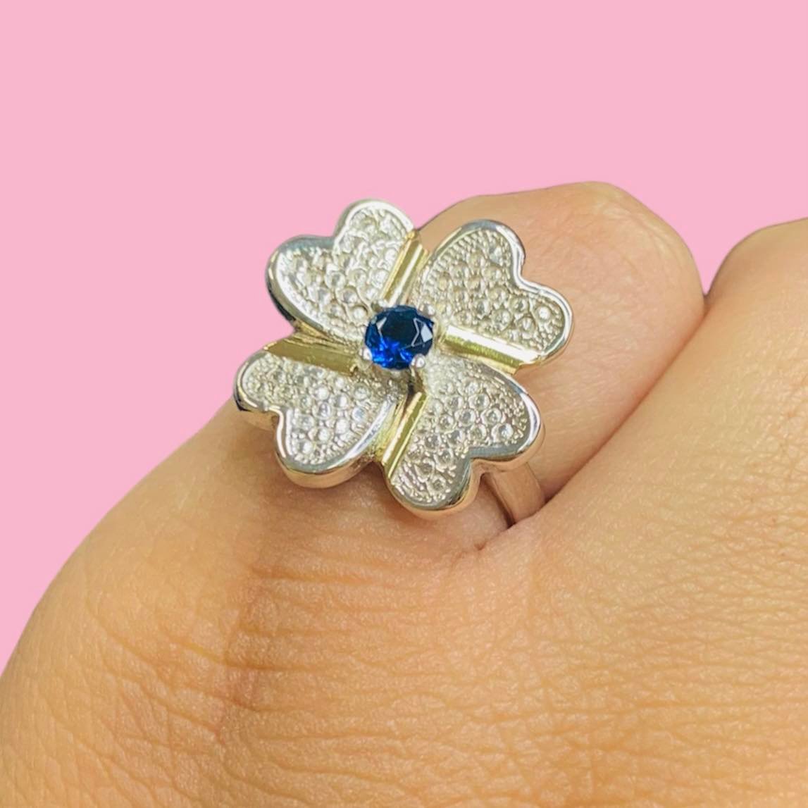 » Anillo Trebol Zafiro de Plata y Oro